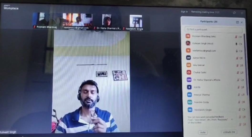 Principal Prof. Sudha Katyal appreciated the efforts of the organizing committee, particularly for conducting the program during the summer break. She further encouraged students and faculty members to participate wholeheartedly and highlighted how regular practice of yoga can effectively reduce stress, anxiety and depression, while fostering overall well-being and holistic health.