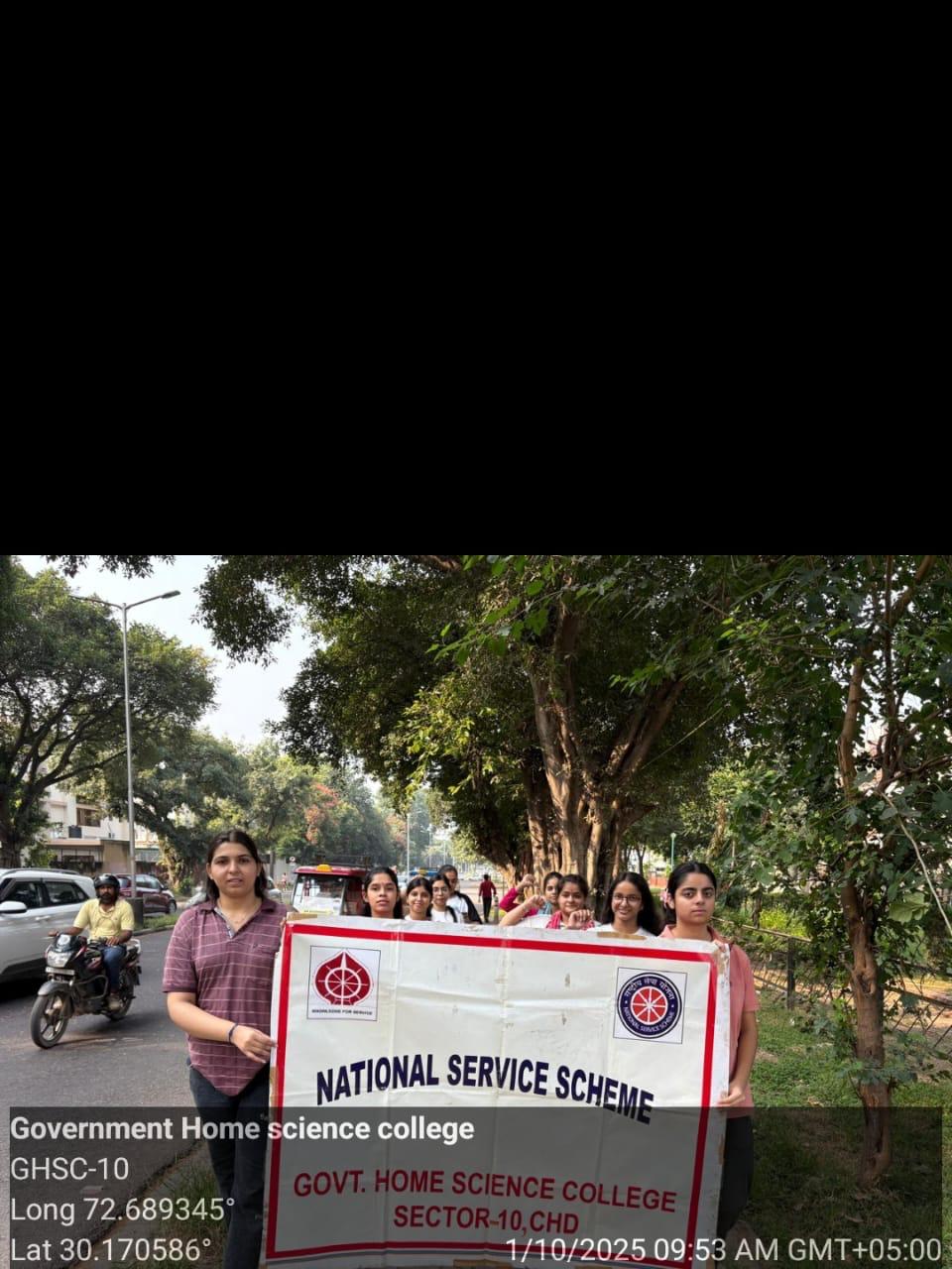 In alignment with the Government of India’s flagship initiative “Swachhta Hi Seva Hai”, the NSS Unit of Government Home Science College, Chandigarh, organized a fortnight-long cleanliness drive both within and outside the college premises from September 17 to October 02, 2025. The campaign was designed to instill the values of hygiene, sanitation and community responsibility among students and the public.