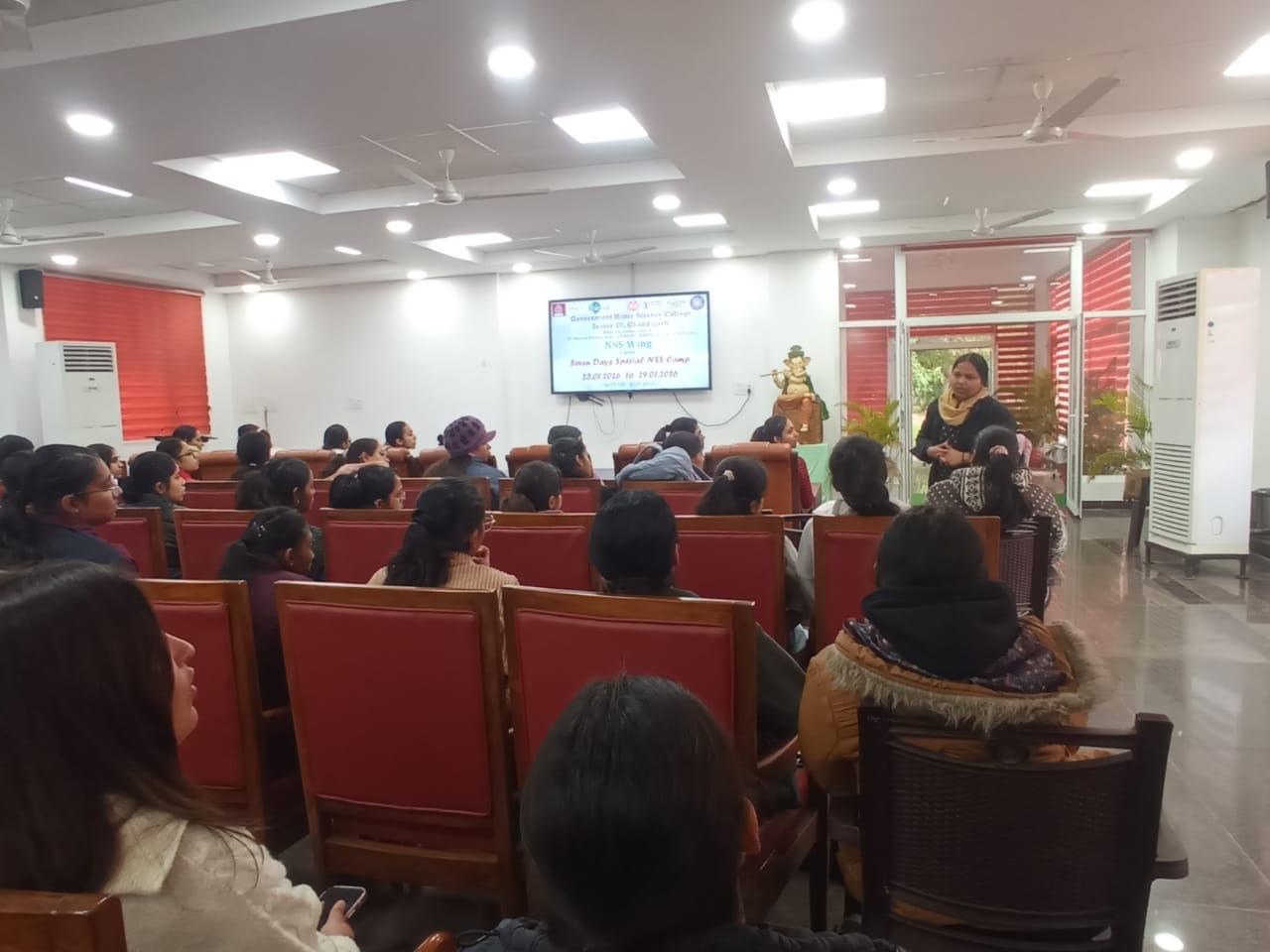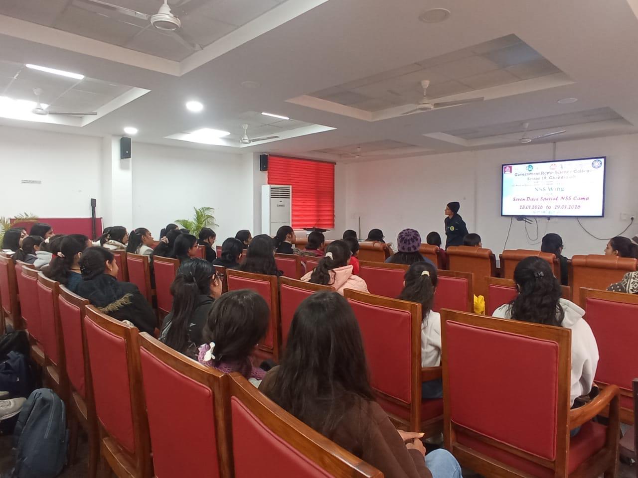 The sixth day of the ongoing Seven Days Special NSS Camp at Government Home Science College, Chandigarh commenced with a Self-Defence session for NSS volunteers aimed at instilling confidence among girls to protect themselves against anti-social elements and to promote overall personality development.