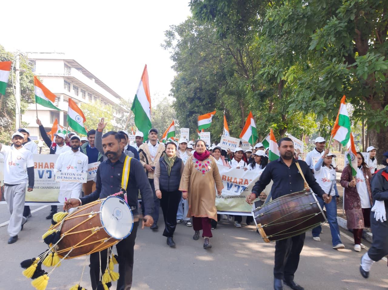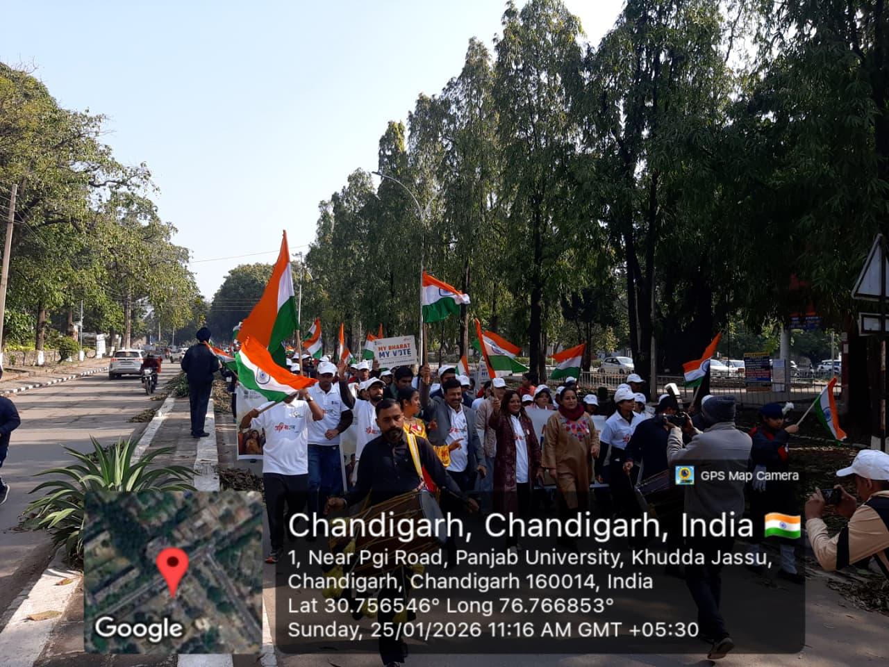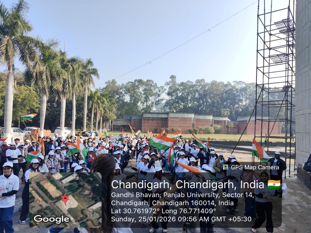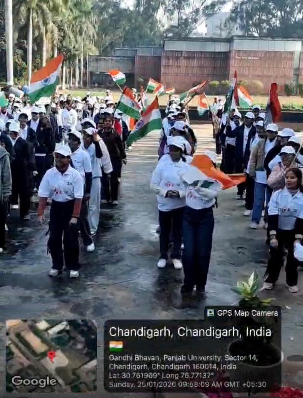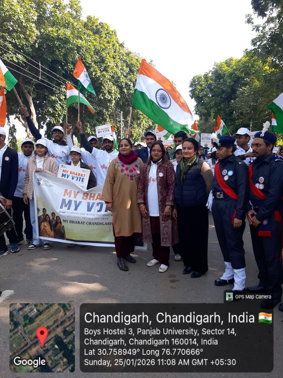 In the later part of the day, a Tiranga Yatra, followed by a vibrant flash mob, was organised at Panjab University, Chandigarh, as a prelude to the Republic Day celebrations. The event was graced by several eminent dignitaries including Panjab University Vice-Chancellor Prof. Renu Vig, Dr. Parveen Goyal, NSS Programme Coordinator, Panjab University, Chandigarh and NSS Programme Officers of the college Mrs.Seema Jaitly and Dr. Neha Sharma.