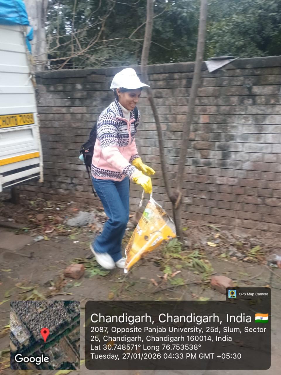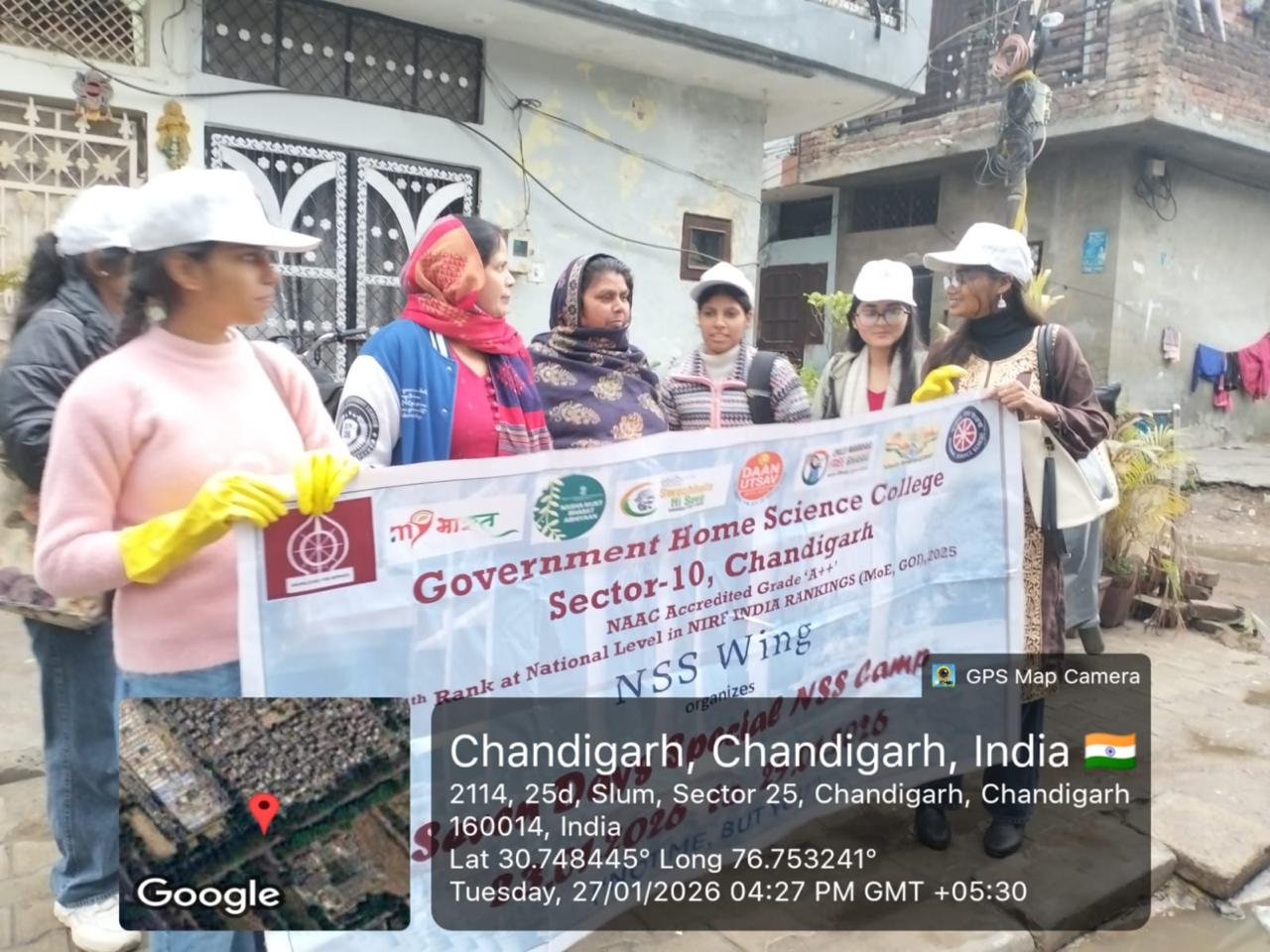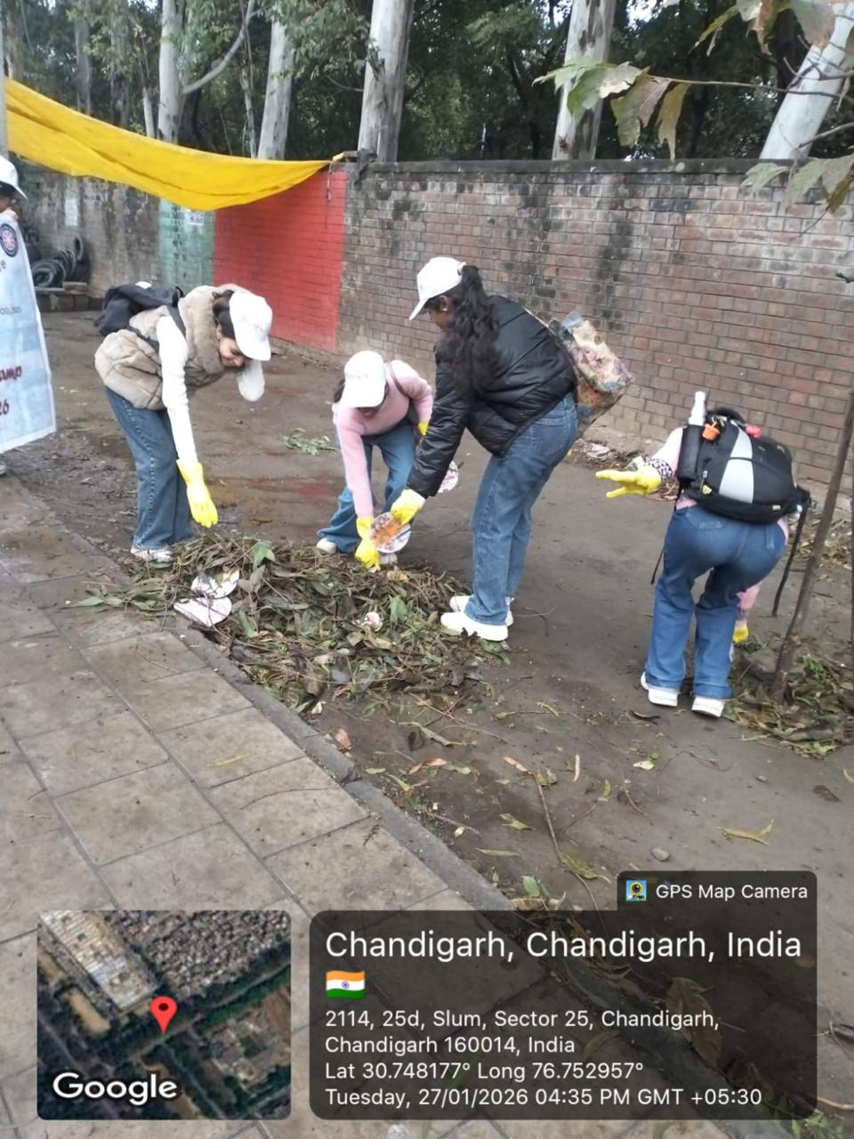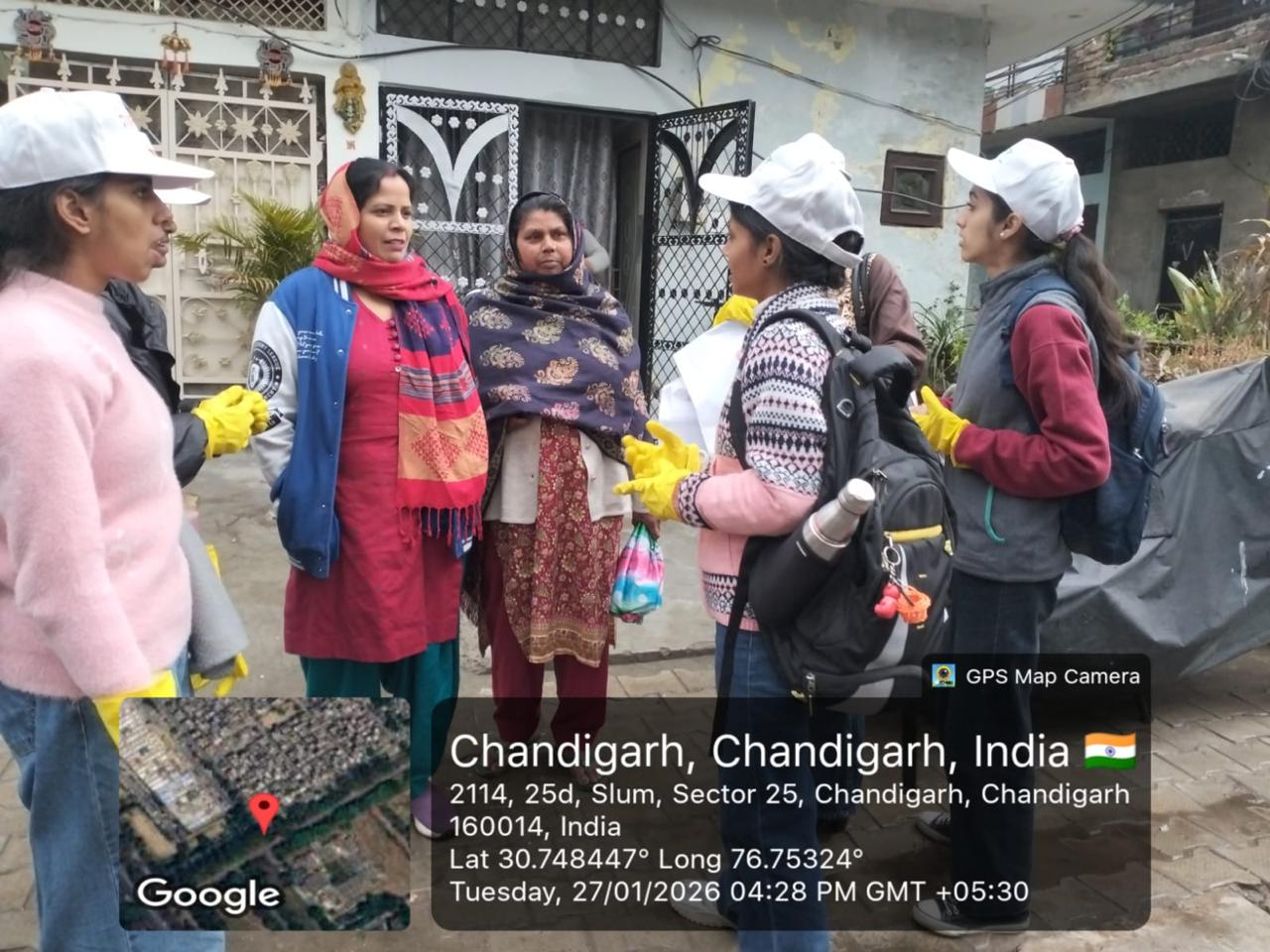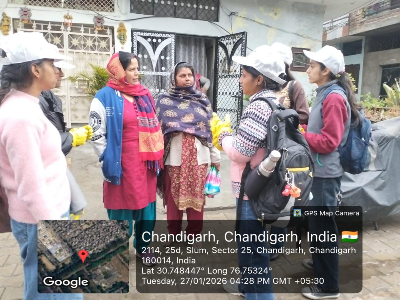 The day concluded with community outreach visits to Dainik Bhaskar Colony, Sector-25, Chandigarh and Bapu Dham Colony, Sector-26, Chandigarh. NSS volunteers sensitised the general public by sharing key learnings from the sessions, particularly regarding legal provisions for women and preventive measures to reduce the risk of cervical cancer. Volunteers also organised cleanliness drive across the respective areas.