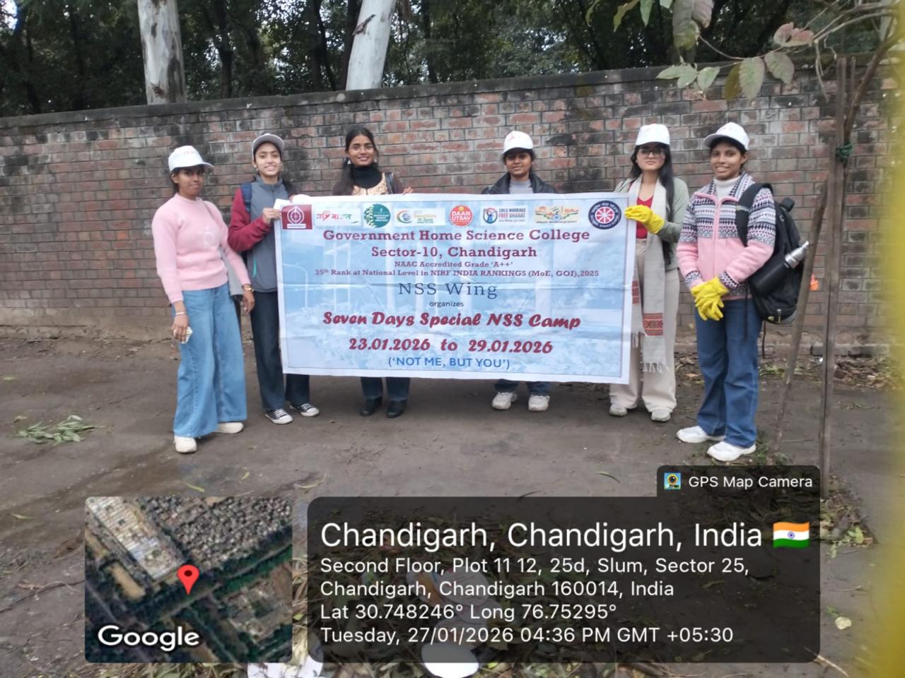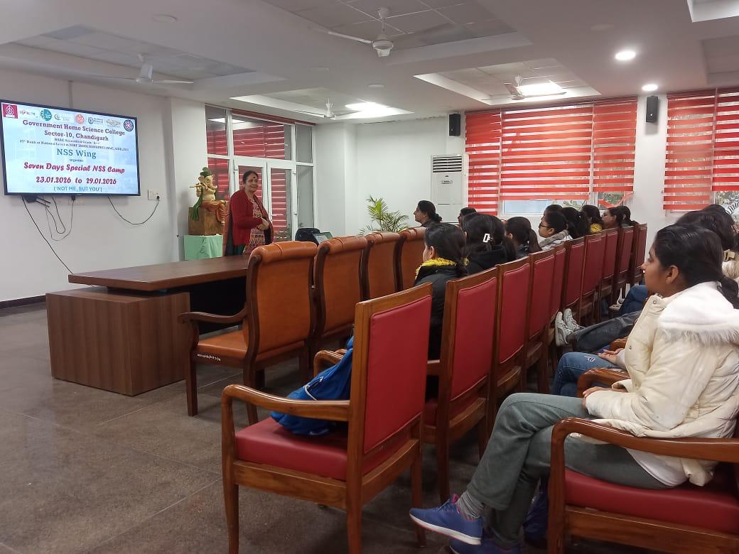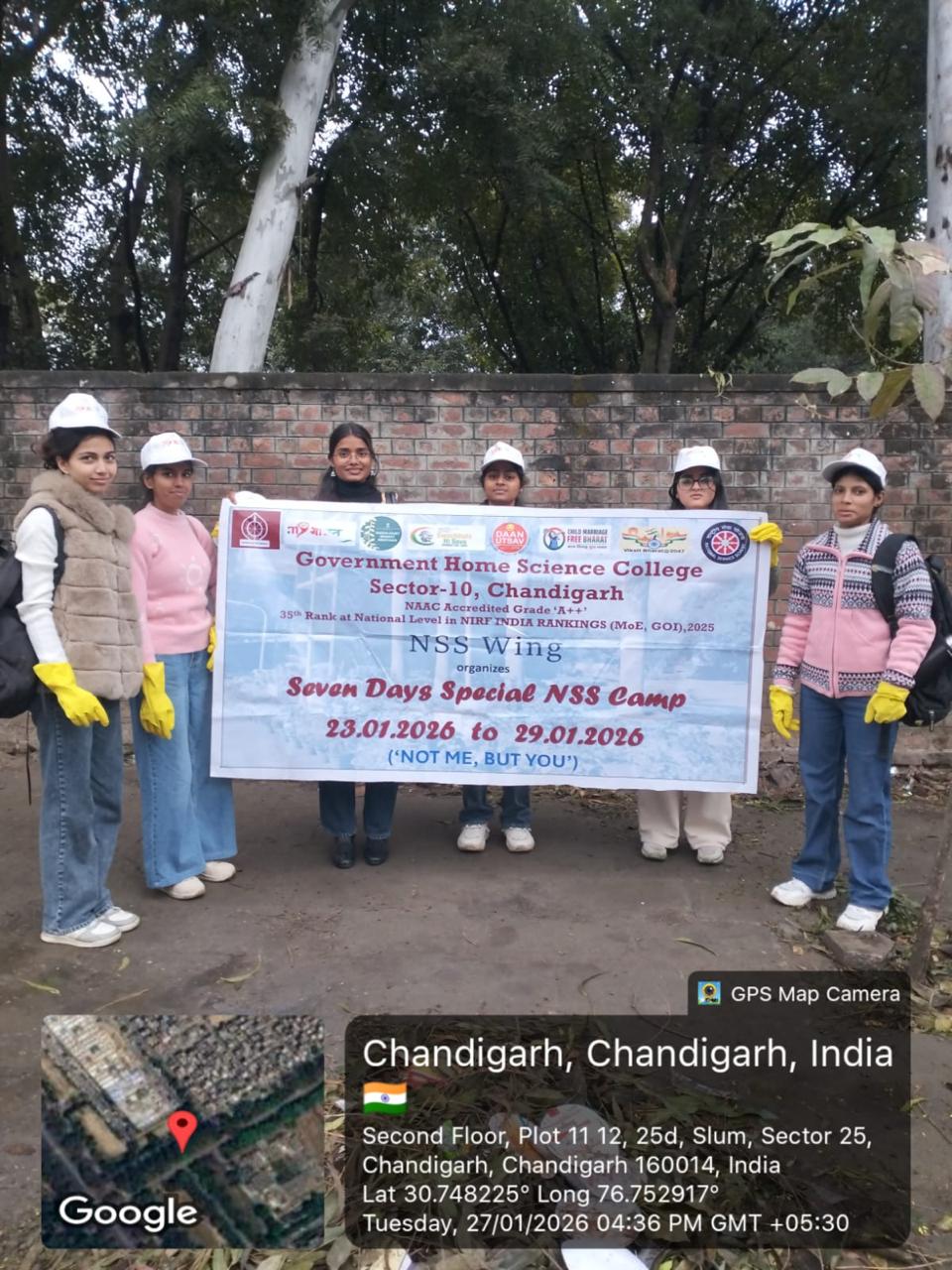 The fifth day of the ongoing Seven Days Special NSS Camp at Government Home Science College, Chandigarh commenced with an insightful session on Legal Provisions for Women on January 27, 2026. The session was delivered by Ms. Madhu P. Singh, Former President, District Consumer Commission, Mohali. Currently serving as a practising Advocate and Arbitrator at the Punjab & Haryana High Court, Chandigarh. Ms. Singh is also a proud alumna of the college. Renowned for her extensive work in the field of gender justice and women’s rights, she delivered an informative, thought-provoking and empowering lecture. The session aimed to deepen the volunteers’ understanding of the various legal provisions enacted for the protection and welfare of women in India.
