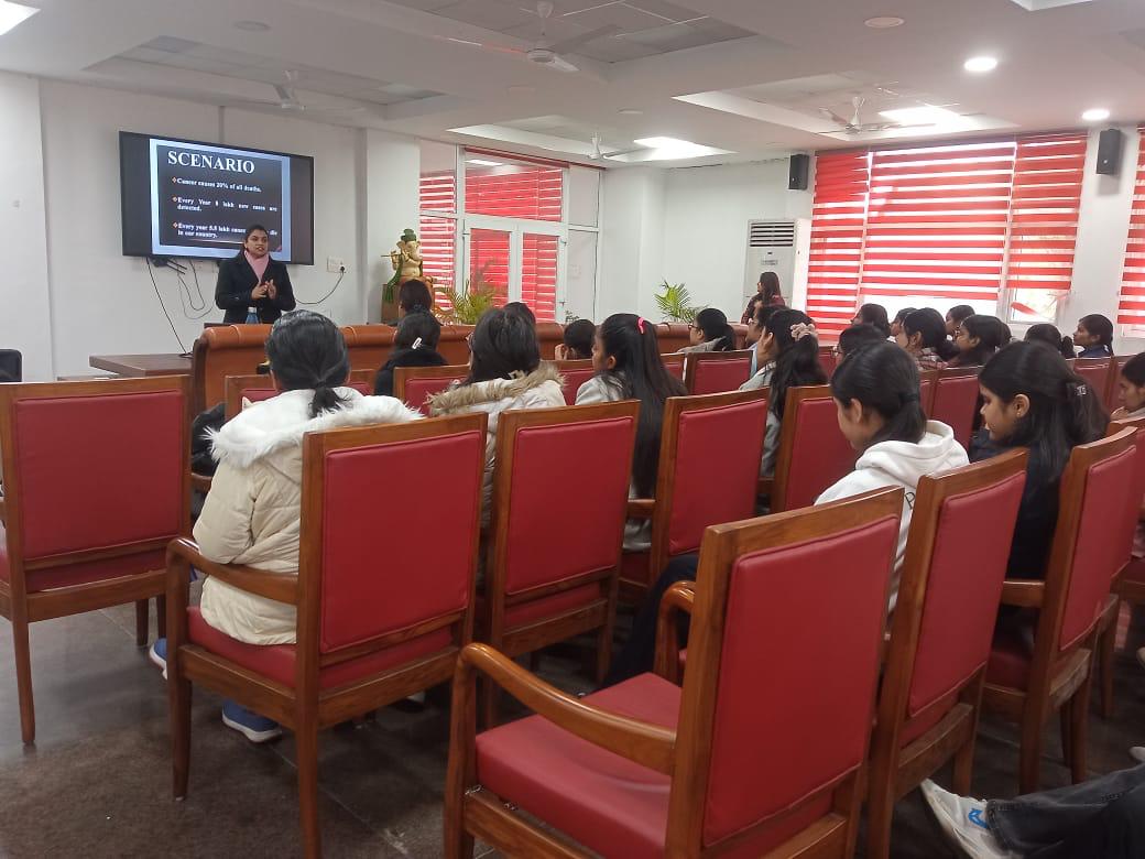 This was followed by a session on Awareness on Cervical Cancer and Its Preventive Measures by Ms. Vandana Sharma, Programme Officer, Family Planning Association of India, Sector-4, Panchkula. She educated the volunteers about the Human Papillomavirus (HPV), its causes, modes of transmission and common symptoms. Emphasising the importance of early detection, she encouraged regular annual health check-ups and highlighted the significance of personal hygiene. Ms. Sharma also stressed the role of a healthy lifestyle, regular exercise and balanced nutrition in preventing lifestyle diseases while advising against high-risk behaviours.