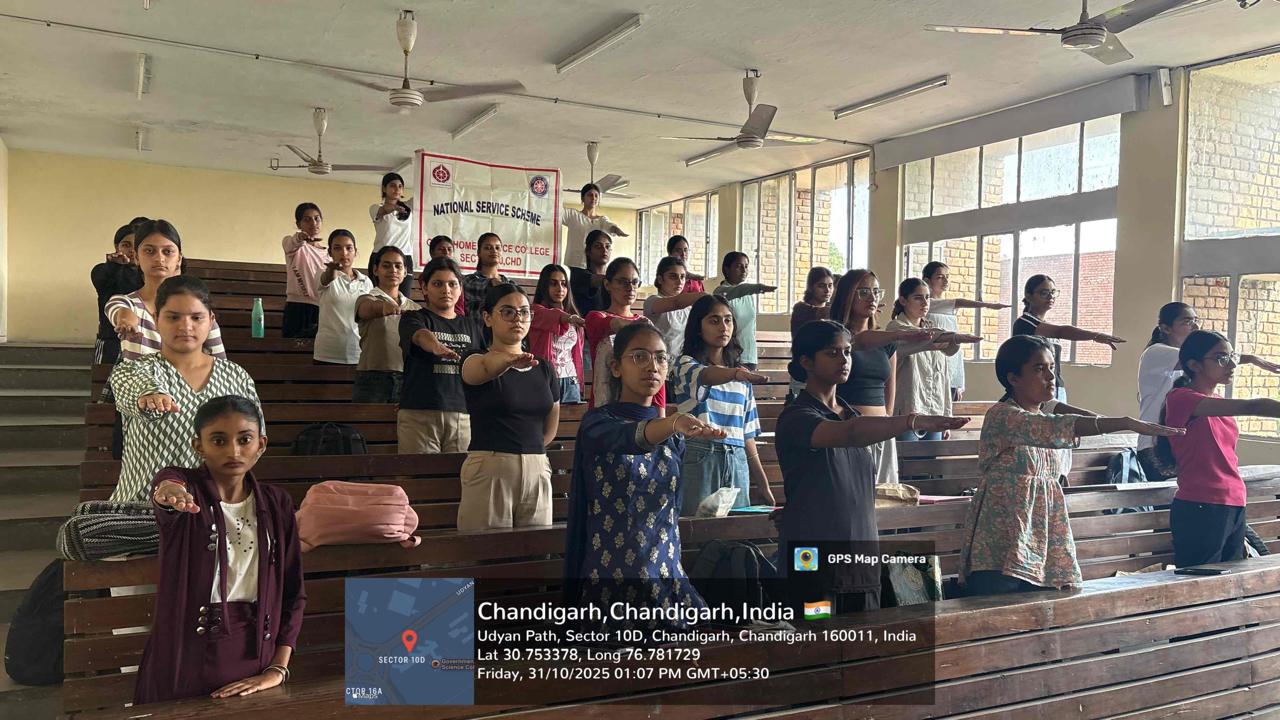 Government Home Science College, Sector-10, Chandigarh actively participated in the Sardar@150 Ekta Padyatra organized by the Chandigarh Administration in collaboration with Mera Bharat Kendra to commemorate the 150th birth anniversary of the Iron Man of India and nation builder, Sardar Vallabhbhai Patel on October 31, 2025.