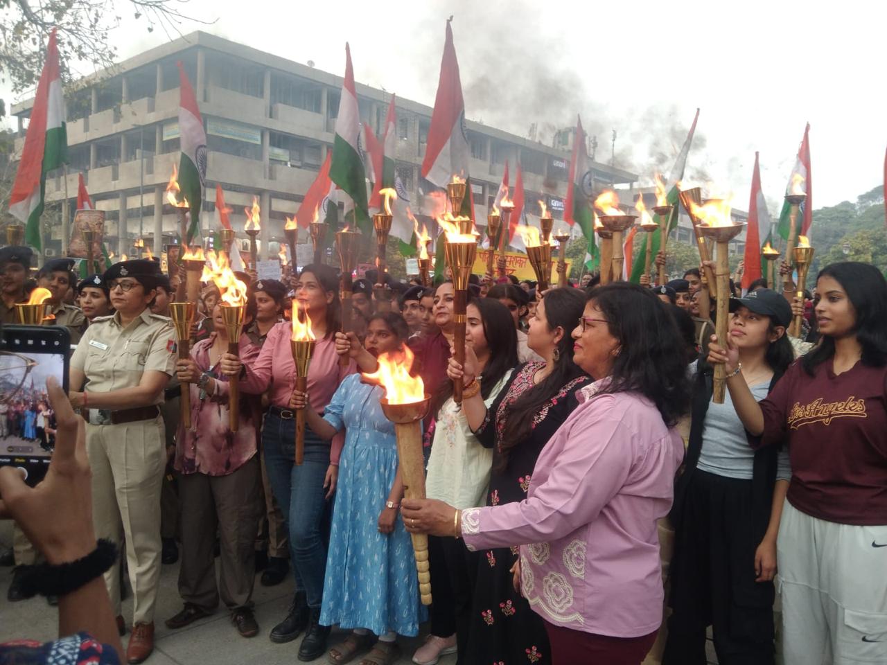 NSS volunteers from Government Home Science College, Chandigarh actively participated in a Mashal Lighting and Awareness Campaign at Sector 17, Chandigarh, marking International Women’s Day on March 06, 2026.