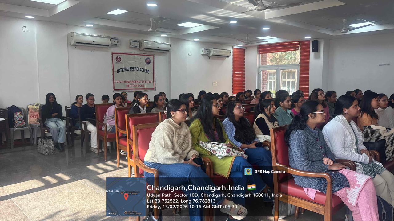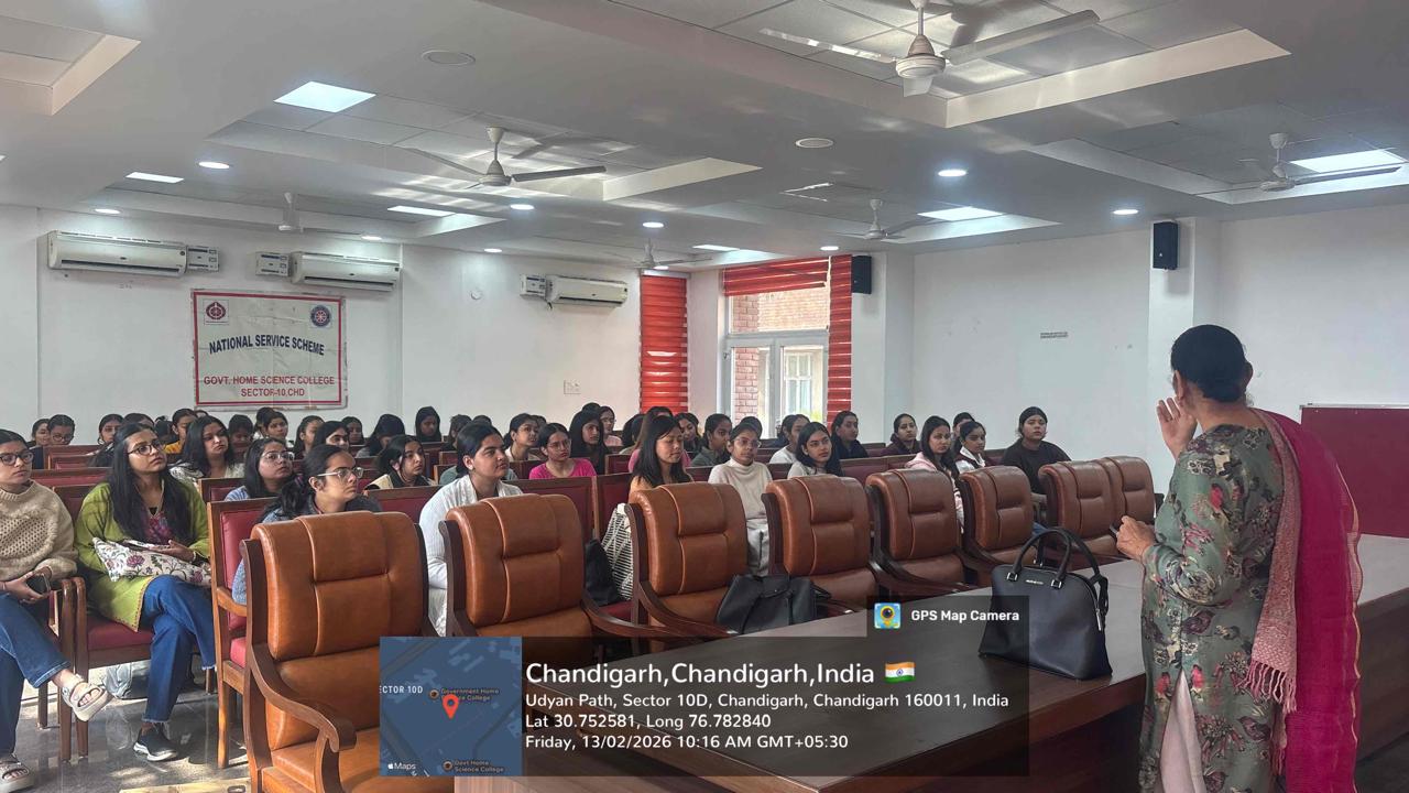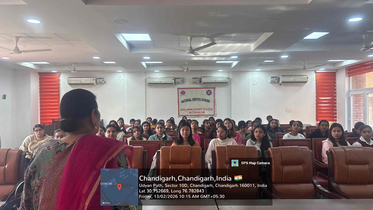 Government Home Science College, Chandigarh organised an informative and engaging session on “Legal Literacy” to promote awareness about legal rights, duties and responsibilities among NSS Volunteers on February 13, 2026. Ms. Madhu P. Singh, Former President, District Consumer Commission, Mohali was the resource person. She is also currently serving as a Practising Advocate & Arbitrator at Punjab & Haryana High Court, Chandigarh and a Proud Alumna of our college.