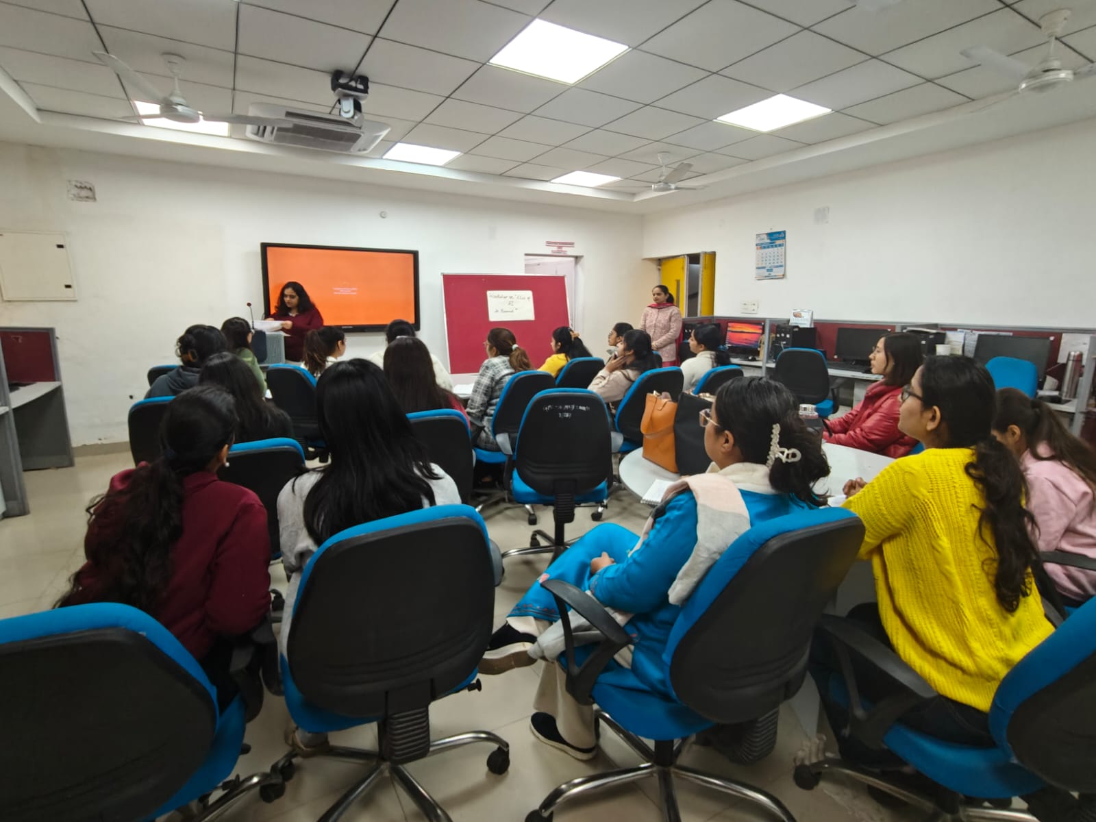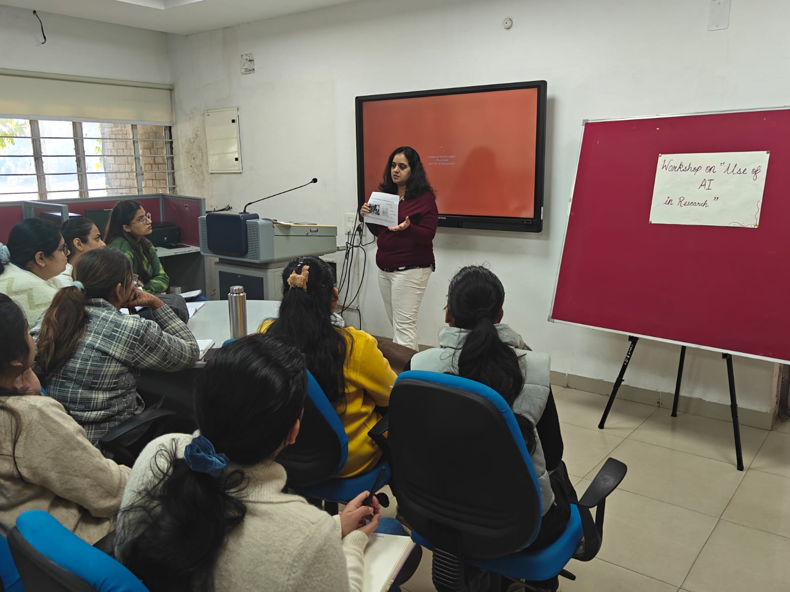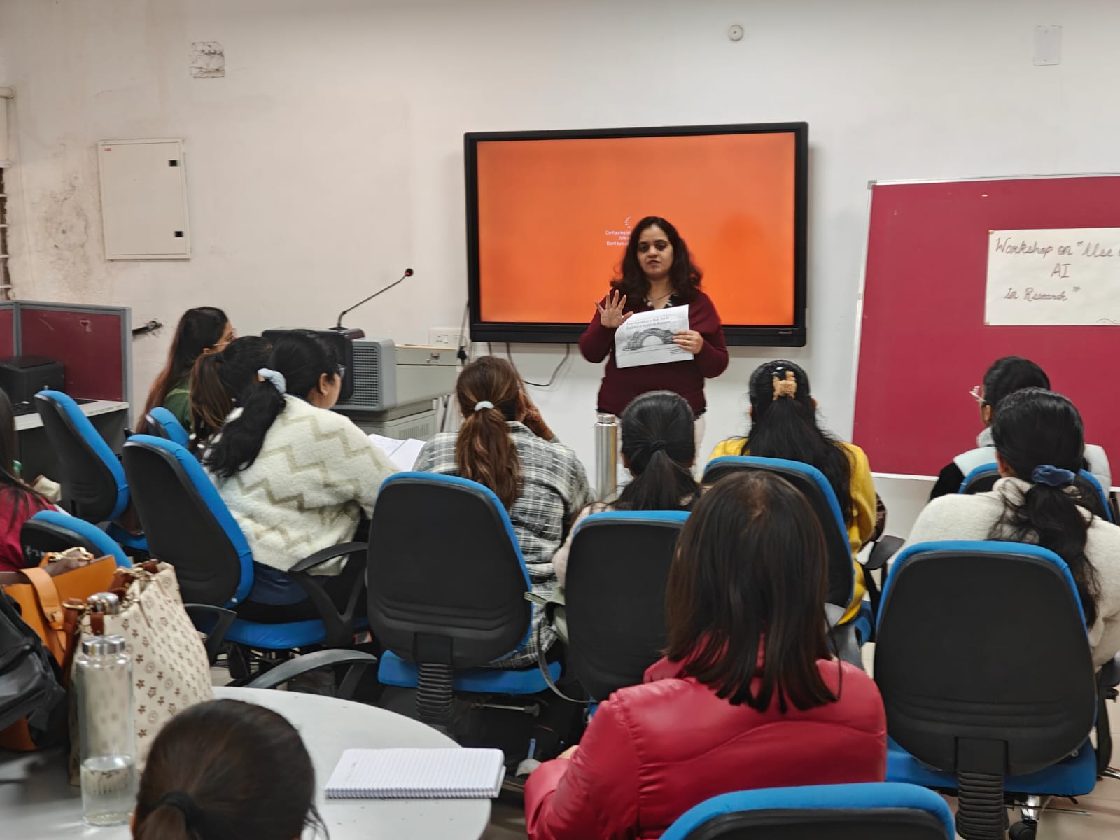 The session was led by Ms. Neha Sethi, who served as the resource person for the event. She elaborated on how artificial intelligence is transforming the research landscape by enabling efficient literature review, data collection and analysis, reference management, plagiarism detection, and research documentation. The speaker also discussed the ethical use of AI tools and guided participants on integrating AI responsibly into their research practices. Practical examples and demonstrations helped students understand how AI can save time, enhance accuracy, and improve the overall quality of research output.