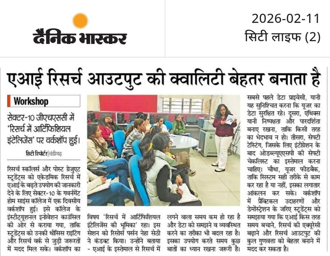 Govt. Home Science College organized a one-day workshop on “Role of Artificial Intelligence in Research” under the aegis of its Insitutional Innovation Council, aiming to familiarize research scholars and postgraduate students with the emerging applications of artificial intelligence in academic research. The workshop was specially curated for PhD scholars and MSc students, keeping in mind their needs related to dissertation writing and research work.