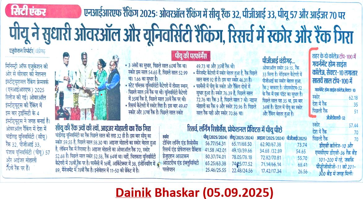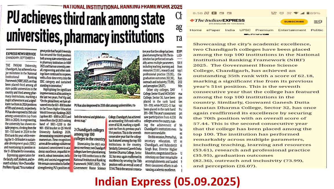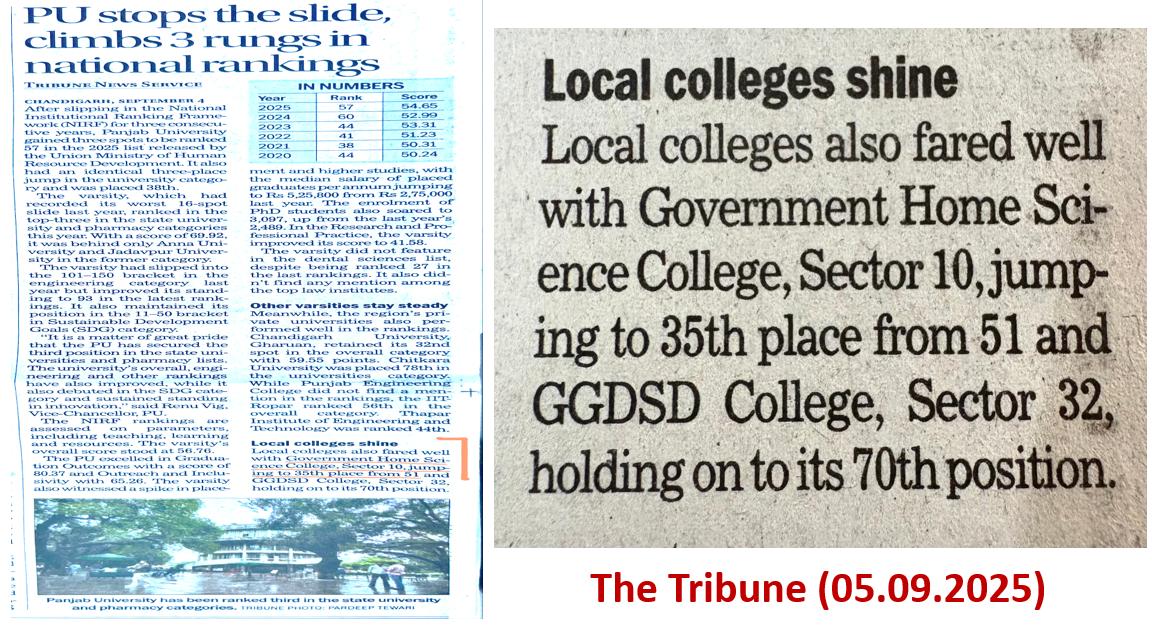Notably, it is the only government or private college in the tricity to have secured a place in the top 50 at the national level, further highlighting its outstanding academic and institutional performance.