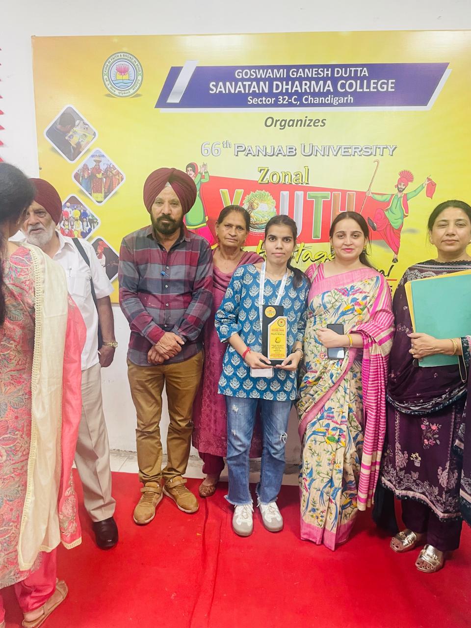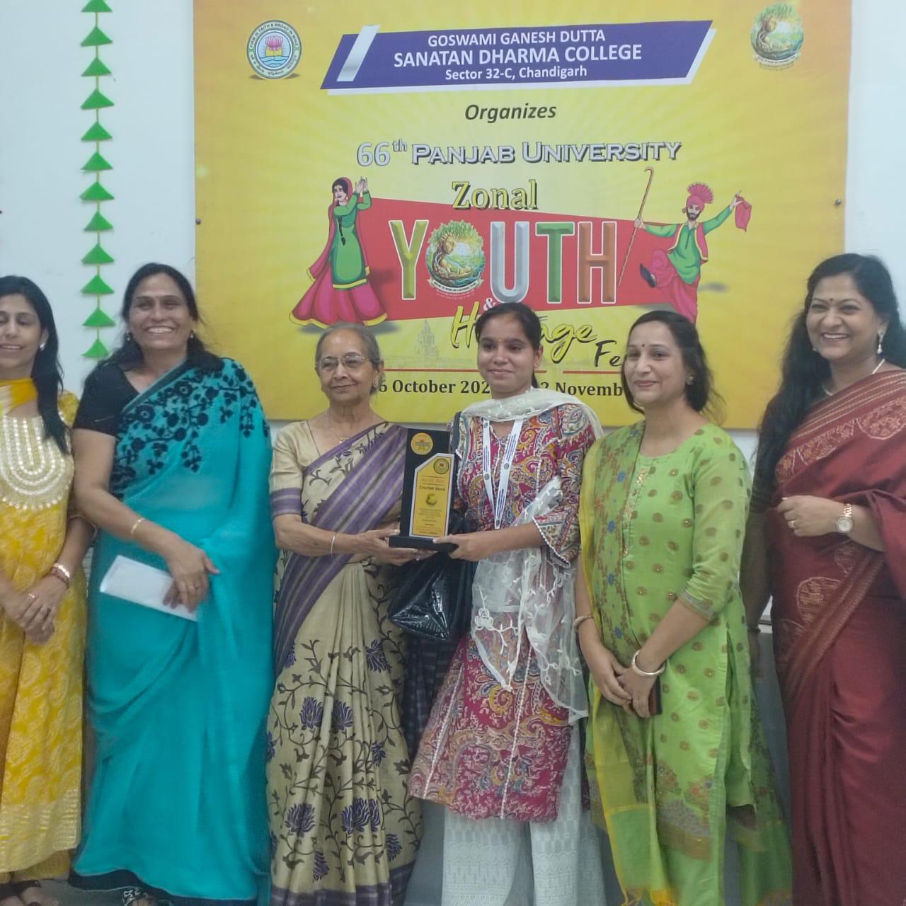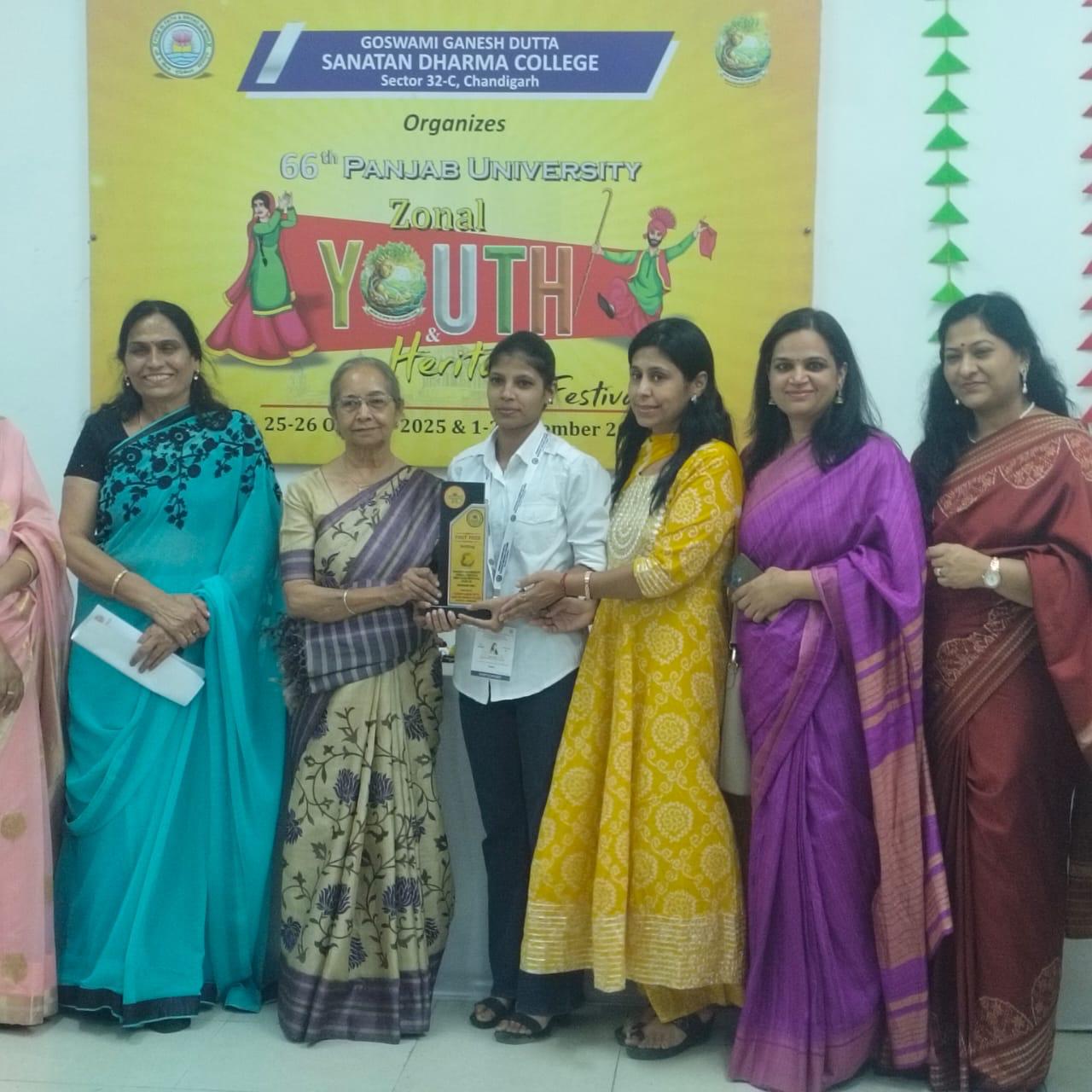 The students of Government Home Science College, Chandigarh brought laurels to the institution by excelling in various Heritage, Fine Arts, and Literary events during the 66th Panjab University Zonal Youth and Heritage Festival held at Goswami Ganesh Dutta Sanatan Dharma College, Sector-32, Chandigarh on October 25–26, 2025.