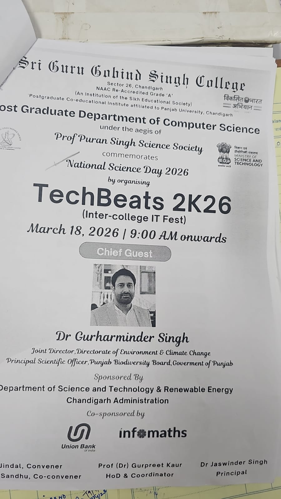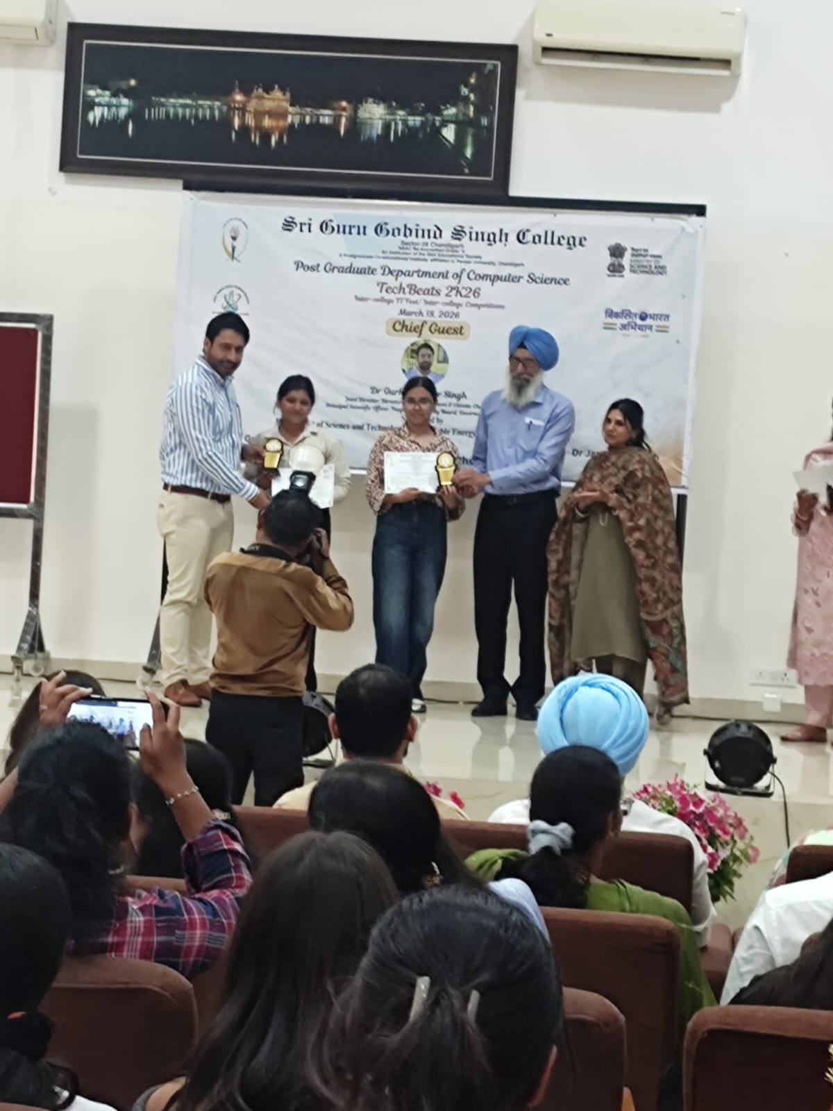 Students of the Government Home Science College, Chandigarh brought laurels by showcasing their creativity and talent at the National Science Day celebration, TechBeats 2K26, organized by Sri Guru Gobind Singh College, Sector 26, Chandigarh on March 18, 2026.