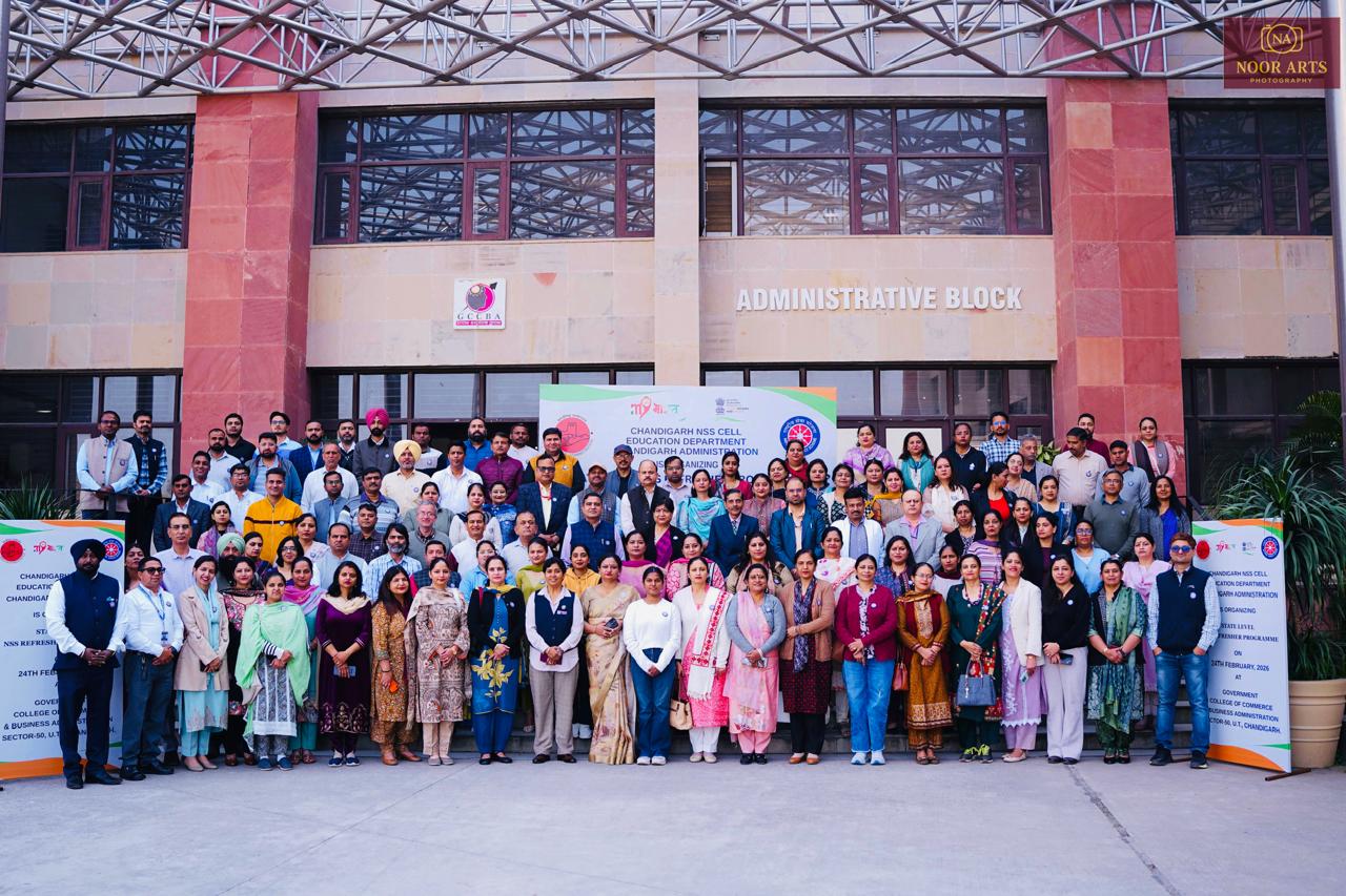 The programme was held on 24th February, 2026 at the Government College of Commerce & Business Administration, Sector-50, Chandigarh. The refresher programme aimed at enhancing the skills, leadership abilities and organizational capabilities of NSS Programme Officers while updating them on new initiatives and best practices under NSS.