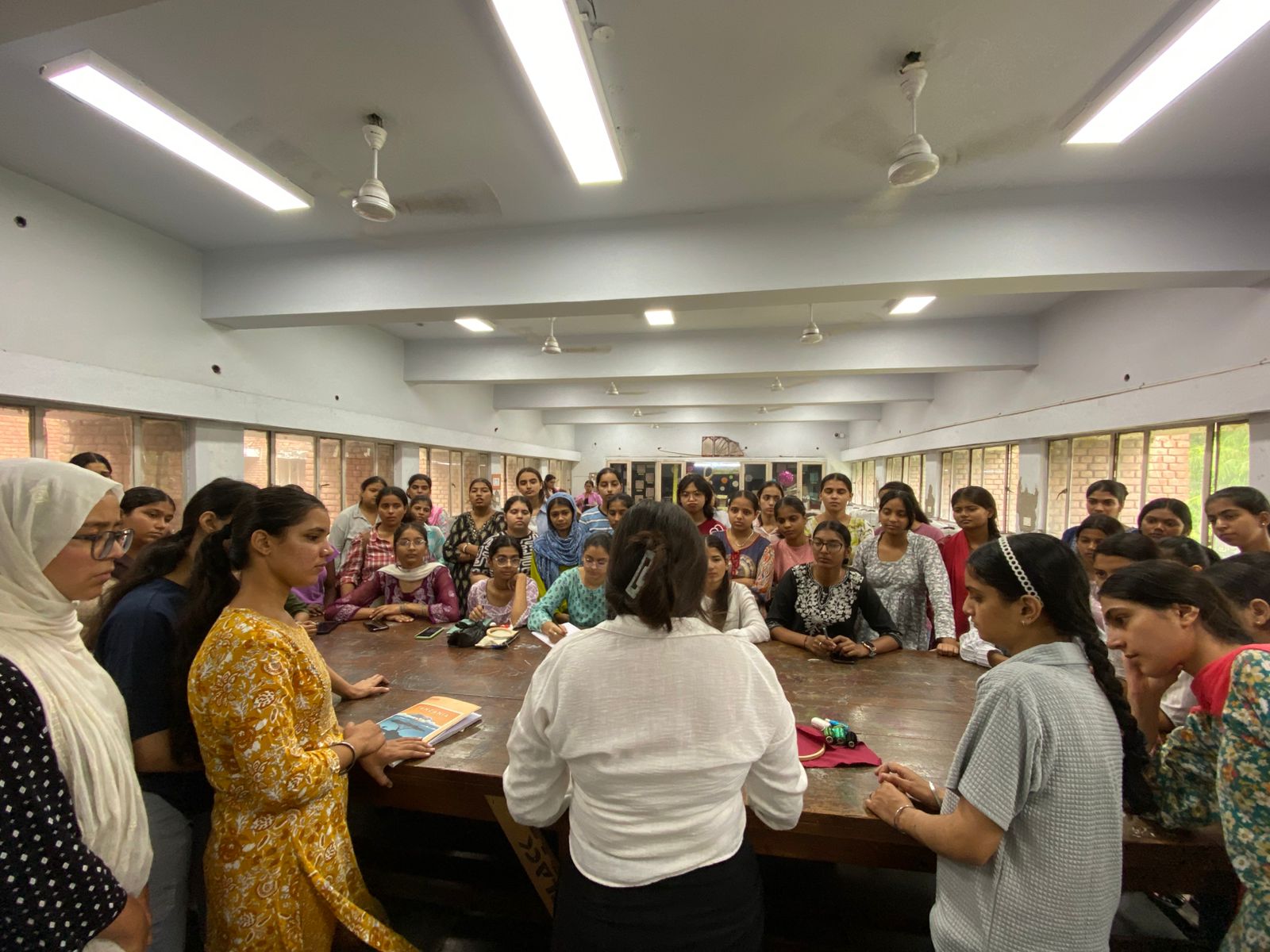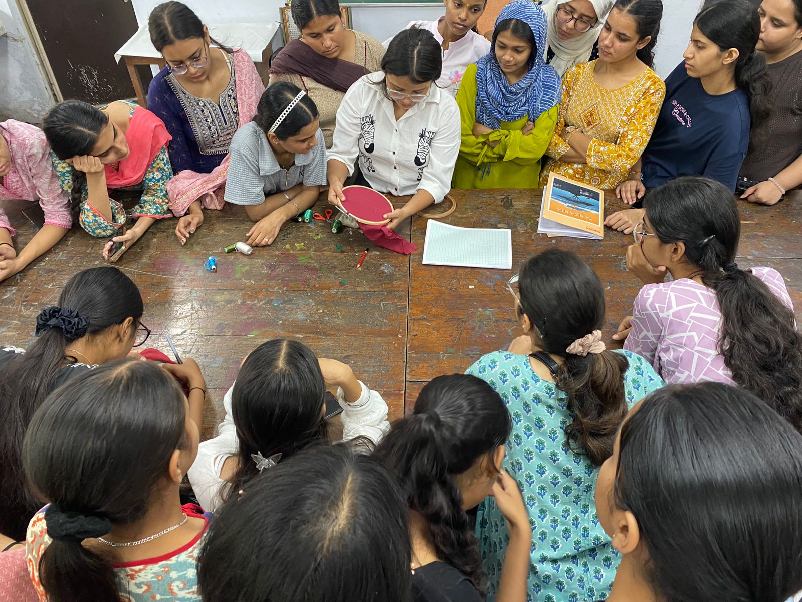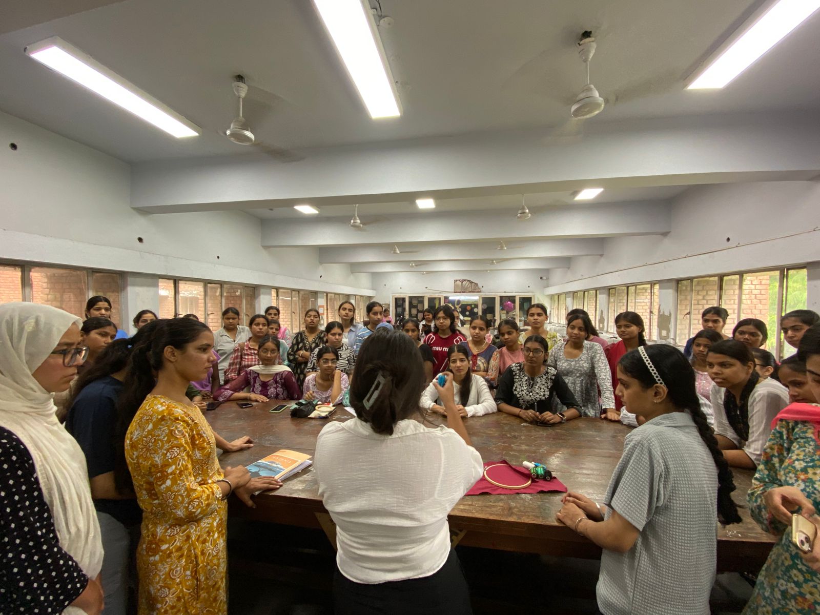 The workshop, exclusively organized for B.Sc. Fashion Designing and B.Sc Home Science 1st and 3rd semester students, focused on reviving and celebrating Punjab’s traditional embroidery arts—Phulkari and Bagh. Ms. Tanisha, drawing upon her extensive professional expertise and creative insight, shared valuable tips and demonstrated intricate hand-embroidery techniques, enabling students to gain first-hand experience of these heritage crafts.