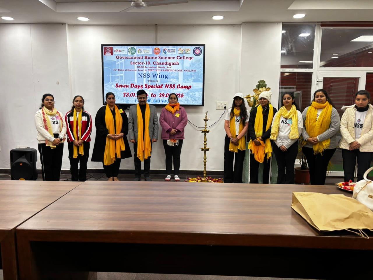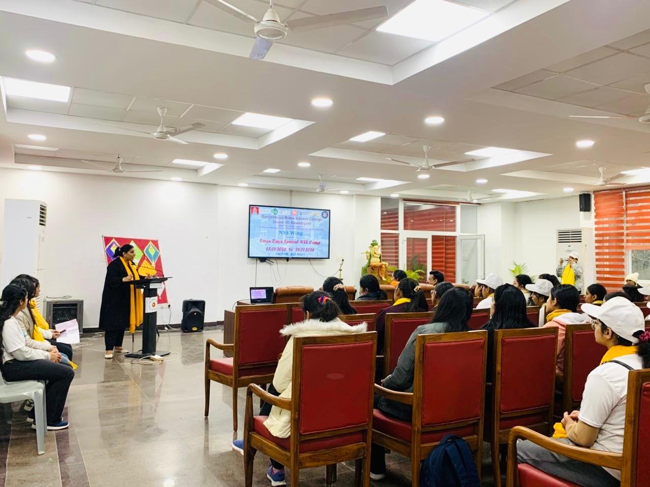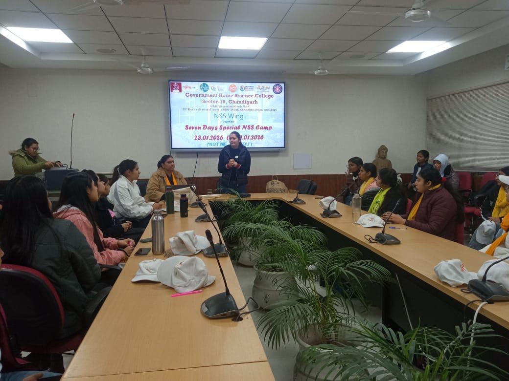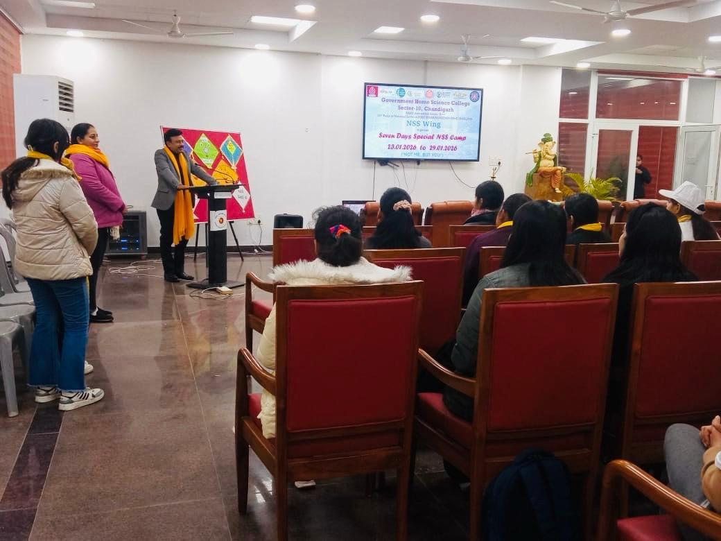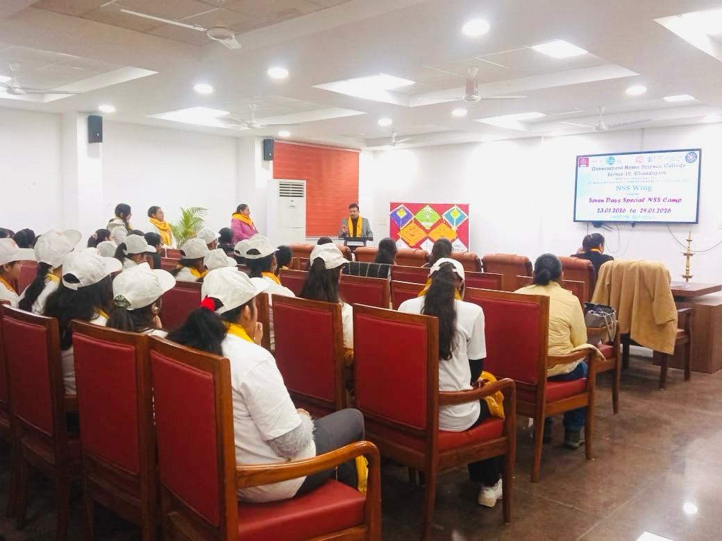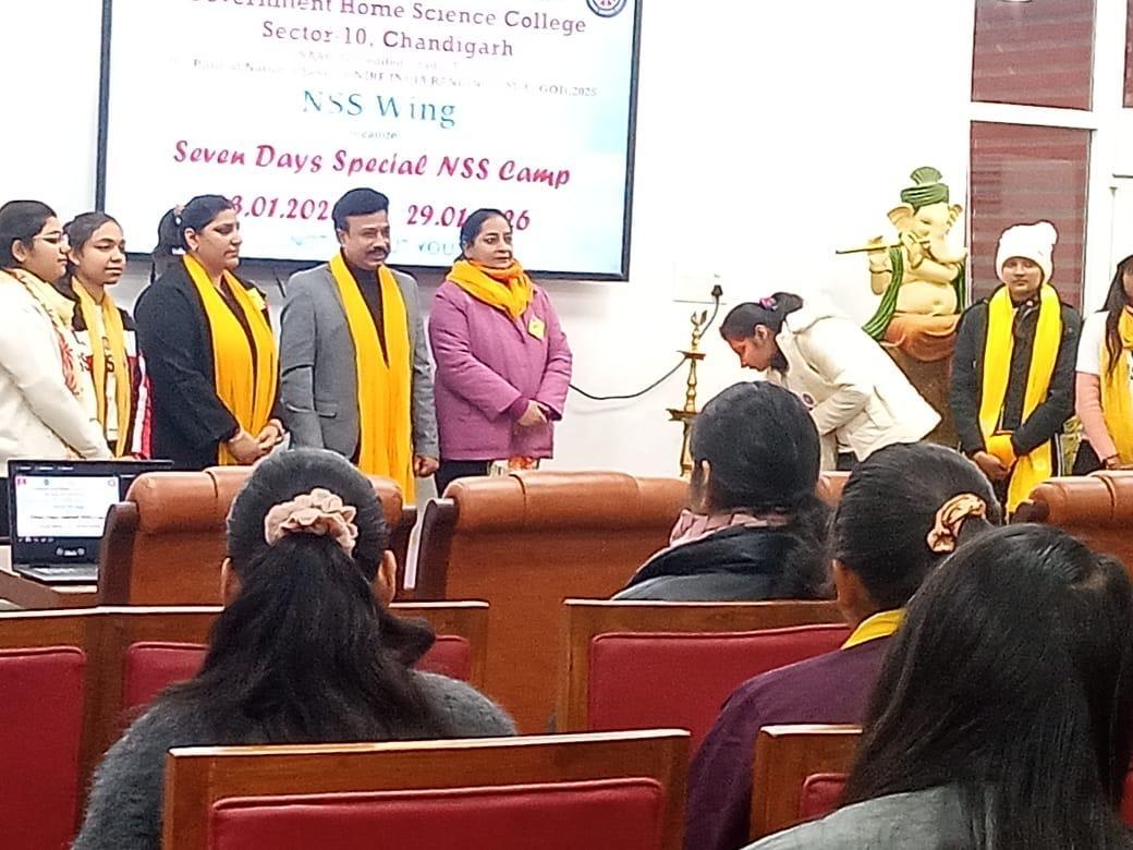 Seven Days Special Camp commenced today on the theme ‘Clean Communities, Healthy Lives’ at Government Home Science College, Sector-10, Chandigarh under the able guidance of the worthy Principal, Prof. Sudha Katyal and NSS Programme Officers Mrs. Seema Jaitly and Dr. Neha Sharma. A total of 100 NSS volunteers have enrolled for the camp, scheduled from January 23 to January 29, 2026.