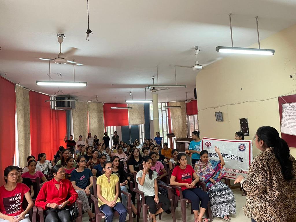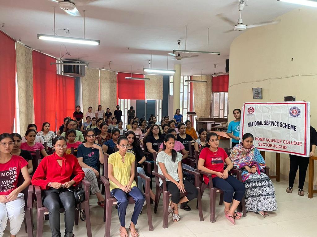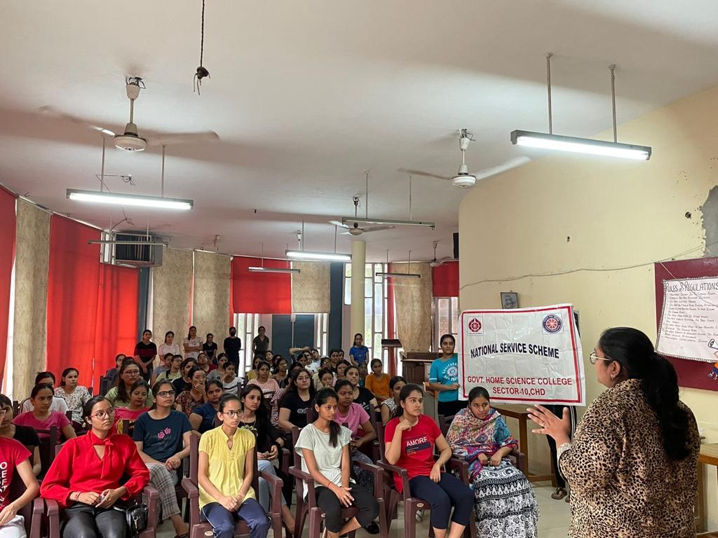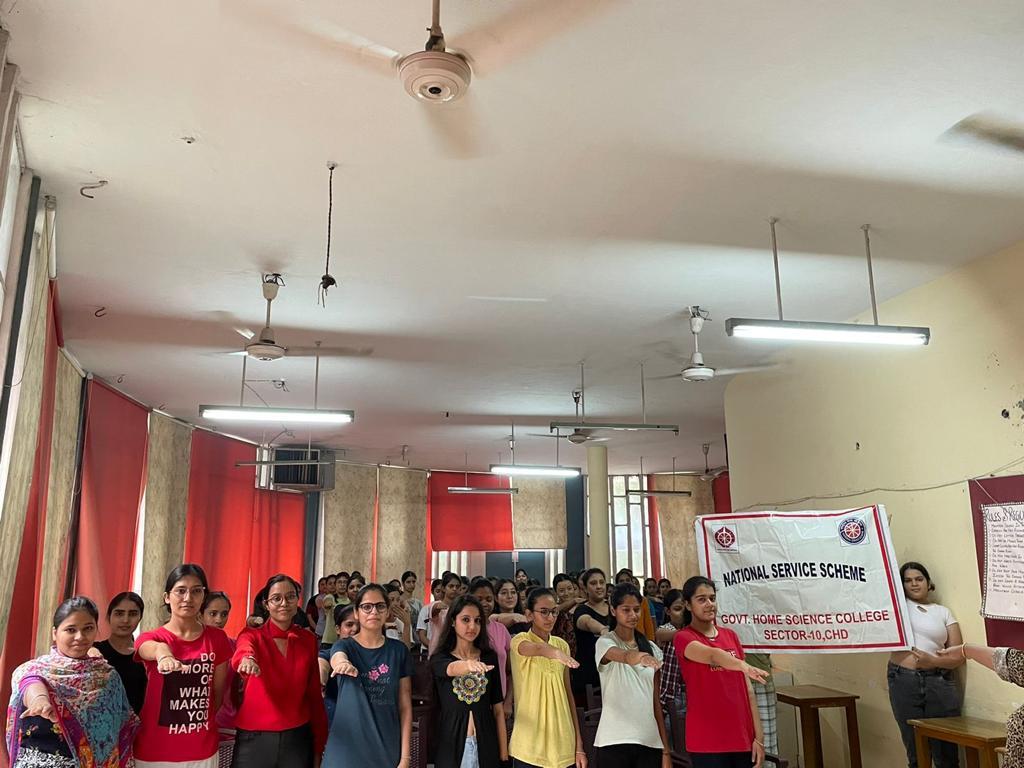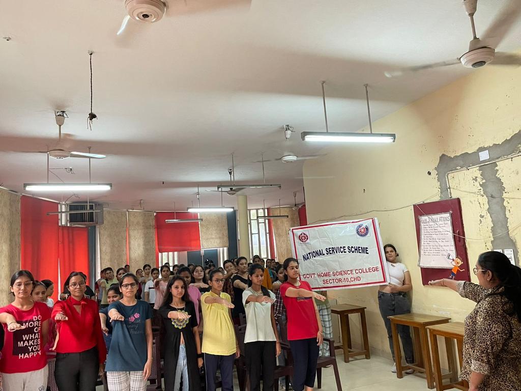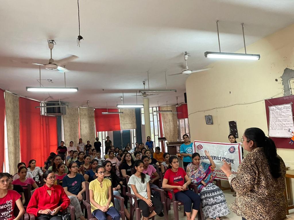 NSS Wing of Government Home Science College, Sector-10, Chandigarh organised an awareness talk on the occasion of 'World No Tobacco Day' on 21 May, 2022 in the hostel premises of the college. The resource person,Dr.Shikha Garg, Assistant Professor from the department of HDFR, spoke on the theme, 'Tobacco:Threat to Our Environment'. Furhtermore, she highlighted the problem of tobacco and drug abuse among adolescents and young adults and its impact on their holistic development. She also made the audience aware regarding various reasons for using tobacco and drugs which includes lack of awareness, curiosity, peer pressure, stress, emotional struggles. The session concluded with a Pledge on ‘Say No to Tobacco’. Principal of the college, Prof. Sudha Katyal urged students to stay away from tobacco/drugs as this is the time when they should focus on academics and pursue hobbies of their choice for their mental & physical well-being.