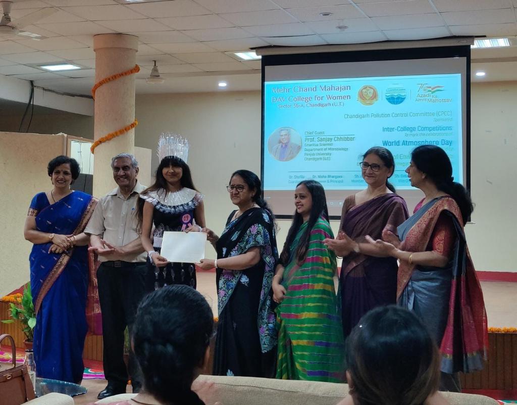 The students of the college participated in various competitions organized by Mehr Chand Mahajan DAV College for Women, Chandigarh on April 09, 2022. The event was sponsored by Pollution Control Committee. Ritika Bijalwan from B.Sc Fashion Designing, Semester-VI (Roll No -825) secured first prize in Eco Walk, Rashmita Subba, M.Sc Foods and Nutrition (Roll No- 611/20) got consolation prize in Poster Making Competition , Sana Parveen, B.Sc Fashion Designing, Semester-VI (Roll No -811), got consolation prize in Best Out Of Waste.