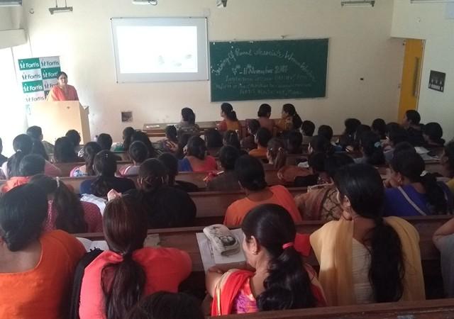 The 'Ginger Club' of Department of Foods and Nutrition, Government Home Science College, Sector-10, Chandigarh in collaboration with Fortis Healthcare, Mohali organized an interactive session on "Polycystic Ovarian Disorder, Obesity and Endocrinological disorders amongst adolescents" by an expert endocrinologist, Dr. Gagan Priya, today. The session was inaugurated by Prof. Sudha Katyal, Principal, Government Home Science College, Sector 10, Chandigarh. Nearly 75 undergraduate and postgraduate students from department of Foods and Nutrition along with the faculty members attended the seminar. The session was also attended by around 50 rural women belonging to nearby rural areas. Dr. Gagan Priya, emphasized on increasing endocrinological disorders amongst women, since they often ignore their own health and are more subjected to hectic schedules, unhealthy eating habits, poor sleep pattern and more stress. She talked about high prevalence of Diabetes, Polycystic ovarian syndrome and obesity and the interrelation between them. She recommended that prevention can reduce the risk of diabetes and its associated problems like hypertension, cardiac disease, mortality, stroke and kidney diseases. The participants were informed about the role of physical activity and lifestyle modification to prevent the occurrence of these disorders. All the participants enthusiastically interacted in the session and cleared their doubts. The session was very informative and was thoroughly enjoyed by the participants. Prof. Sudha Katyal, Principal, Government Home Science College, Sector 10, Chandigarh, appreciated and applauded the efforts of the department in upgrading the existing knowledge base of the students and faculty.