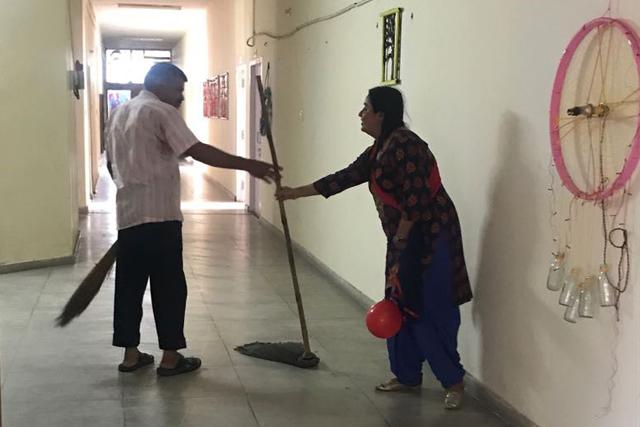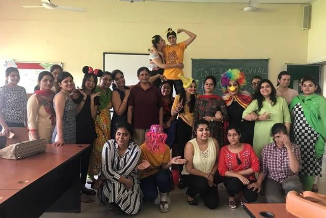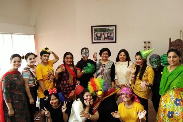 The second day of the HAPPINESS WEEK witnessed a day full of fun and excitement by the CLOWNS all over the college. The students of the Department of Human Development and Family Relations turned into clowns in colourful and funky outfits with funny and attractive props. They could be seen playing around, and doing pranks with whosoever they met in and outside the rooms and office, Chaitanya Laboratory Nursery School and were busy spreading laughter.The clowning activities started the moment students and teachers entered the college in the morning.The activity broke the monotony of the otherwise busy routine that sometimes take a toll on them. These clowns from B.Sc. HDFR 3rd Semester, M.Sc. HDFR (1st and 3rd Semester) and Post Graduate Diploma in Child Guidance and Family Counselling acted as stress busters for many and in this life, full of hustle and bustle made them realize that life is much more beyond this. Not only the students but even the faculty members of the department and other teachers of the college were seen enjoying with the clowns. The clowns kept the Principal of the college, Prof Sudha Katyal busy by hugging her and making sweet gestures. She appreciated the initiative of the students turned clowns. The activity indeed suggested celebrating each day of life and turning each moment into contagious happiness.