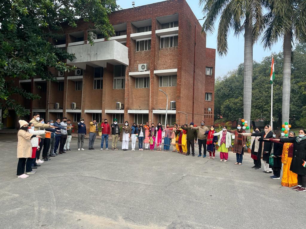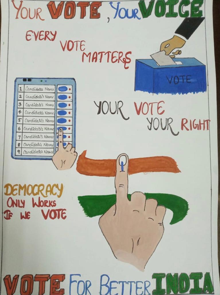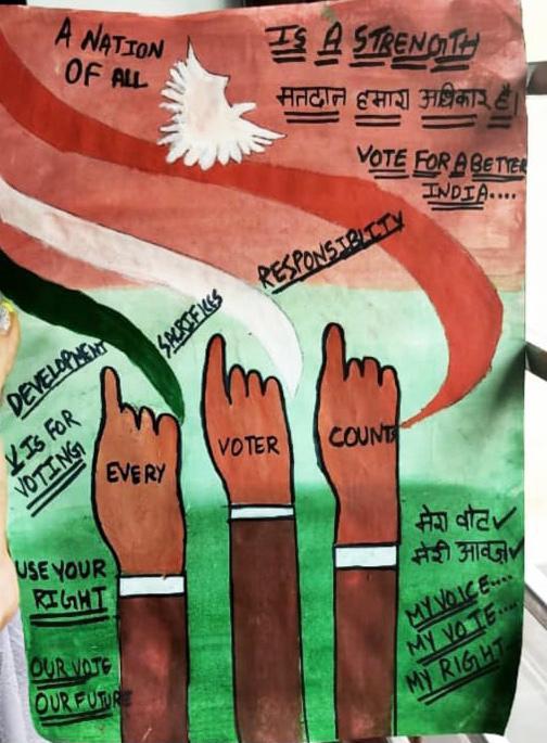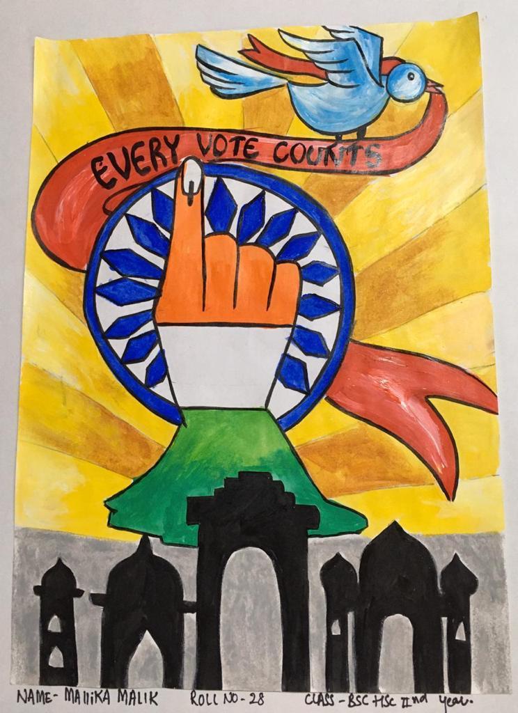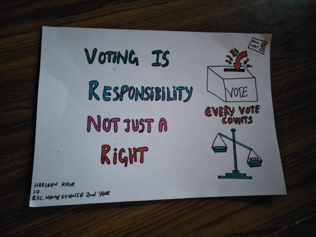 Electoral Literacy Club of Government Home Science College, Sector-10, Chandigarh has celebrated National Voter’s Day on January 25, 2022. Voter’s Pledge & Poster Making Competition on the theme ‘Vote for Hope, Vote for Change’ were organized to mark the occasion. Prof. Sudha Katyal, Principal of the College applauded the efforts of Electoral Literacy Club and talked about the main objective behind the celebration of National Voter’s Day. She further emphasized that it is celebrated to encourage, facilitate and maximize enrolment, especially for new voters.
