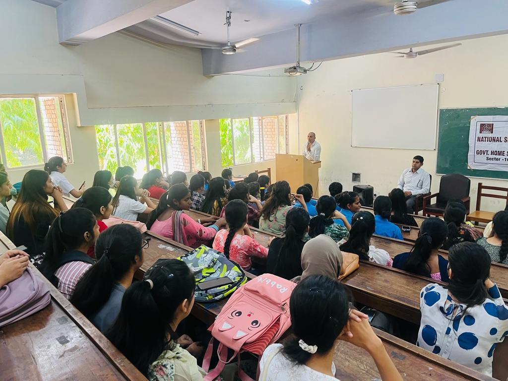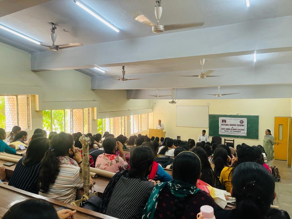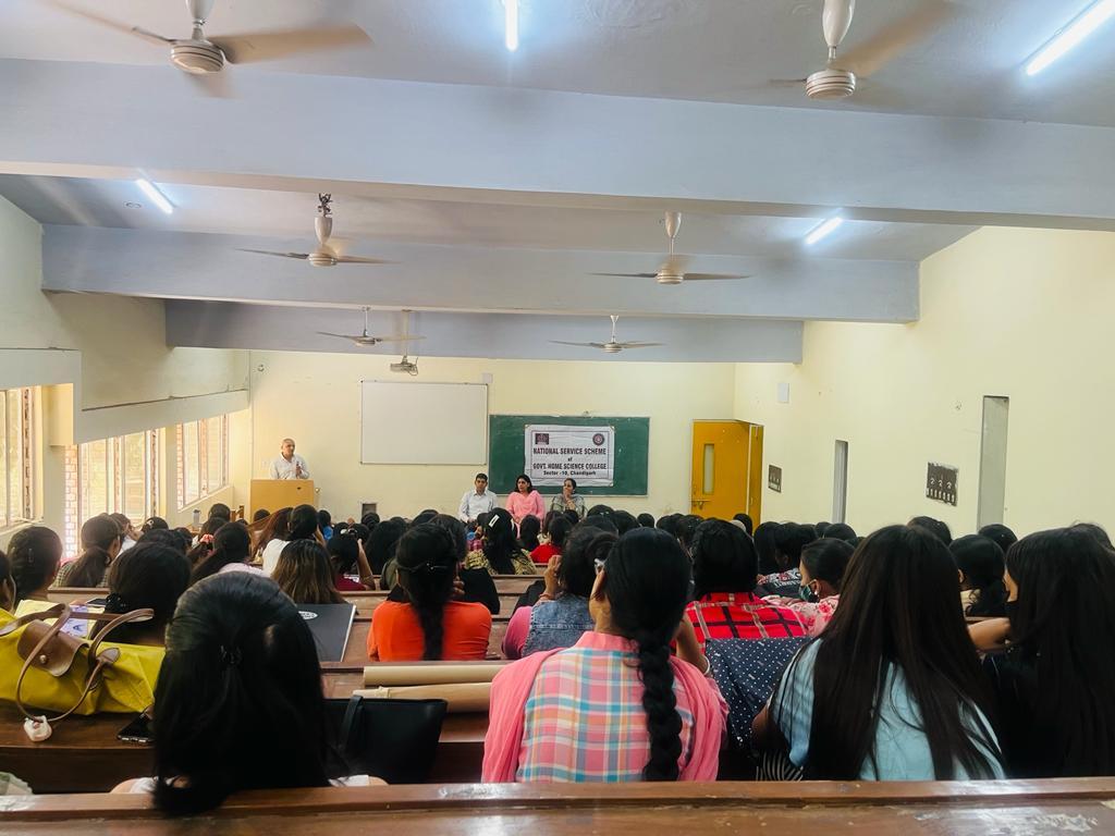 Government Home Science College organised an awareness session on Cyber Security. Mr.Vikas Sangwan and Mr. Jai Bhagwan were the resource persons from Cyber Security Cell, Chandigarh. The session focussed on creating awareness on cyber crimes and how they can be prevented. Mr.Sangwan highlighted the significance of cyber awareness in present times and insisted that there is a dire need to be cyber ready. More than 100 NSS Volunteers and NCC cadets along with staff members attended the session. Principal of the college, Prof.Sudha Katyal emphasised on the importance of organising such sessions and urged the audience to be cyber secure and cyber smart.