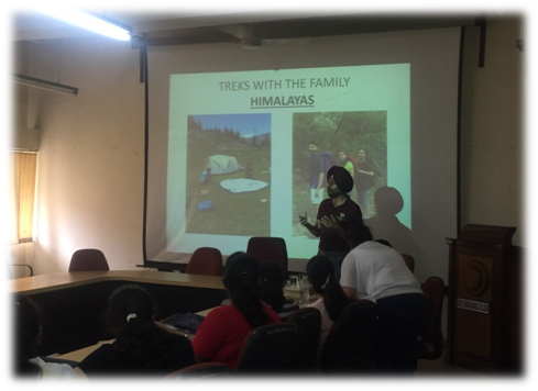 Government Home Science College organized a motivational talk on the theme 'Dream as big as mountains' in lieu of World Sports Day. The speaker of the workshop was a well known World Trekker Col. Aparjeet Nakai. He inspired young gathering of more than 100 undergraduate students. He emphasized that in life anything can be achieved through strong determination, hardwork and will power. He shared vivacious tales of his fascinating mountaineering experiences through motivational pictures and inspired the audience. He also enlightened them with various strategies which are imperative for trekking. Principal of the college, Prof. Sudha Katyal also encouraged the students to stay fit and adopt all those techniques elaborated by Mr. Nakai and congratulated the staff for holding the motivational talk.