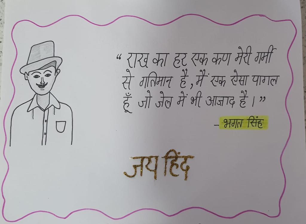 NSS Wing of Government Home Science College under the valuable guidance of worthy Principal of the college, Prof.Sudha Katyal, conducted a host of activities to observe Shaheedi Diwas on 23.03.2022. The day started with NSS Voluntan eers participated in a rally raising those slogans which were raised by Shadheed Bhagat Singh. Subsequently, Volunteers attended Online Session organized by Ministry of Youth Affairs & Sports, in which Hon’ble Minister Sh.Anuragh Thakur interacted with NSS Volunteers in an live interaction on Shaheedi Diwas. NSS Volunteers also made beautiful posters on the life of Bhagat Singh. Principal of the College, Prof. Sudha Katyal emphasized on inculcating a sense of patriotism among NSS Volunteers by highlighting the significance of Shaheedi Diwas and highlighted about the sacrifices of brave lives of our freedom fighters. She also urged the volunteers to contribute their part in making their country proud by becoming a responsible citizen and not to forget the sacrifices being made by these freedom fighters to make our country free and independent.