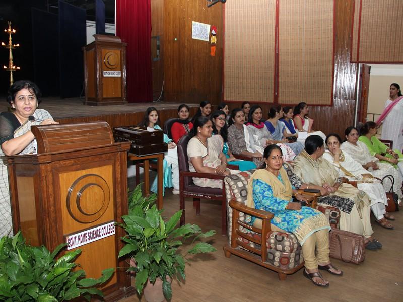The comprehensive orientation program was conducted to support new students as they begin their journey for undergraduate, post graduate and diploma courses in Home Science College, Chandigarh on July 31,2017.The programme was inaugurated with the lighting of the lamp by Principal of the College ,Prof. Sudha Katyal along with the senior faculty members. Prof. Sudha Katyal instilled confidence among students with her highly motivational address and urged them to follow the path of 3D's i.e. Desire, Dedication and Discipline in their life. She advocated the students to have burning aspiration to succeed and achieve short term and long term goals in life with perseverance and restraint. She encouraged the students to get familiar with the campus and utilize the college resources. She assured the students that she and her dedicated faculty will fully support the new students in adjusting to the college environment and helping them in changing their dreams into reality. The faculty members introduced themselves and gave a brief outline about their subjects and their respective departments. Students were apprised on diverse aspects concerning them like scholarships, fee concessions, anti ragging, examination rules, student elections, NSS, NCC , hostel rules, as well about various clubs like Environment, Red Ribbon , Dramatics, Happiness and Well Being, Ginger etc where they can showcase their talent and make themselves and college proud by participation and winning awards.The programme concluded with taking all the students around the college with the aim of making them acquainted with college departments and infrastructure.
