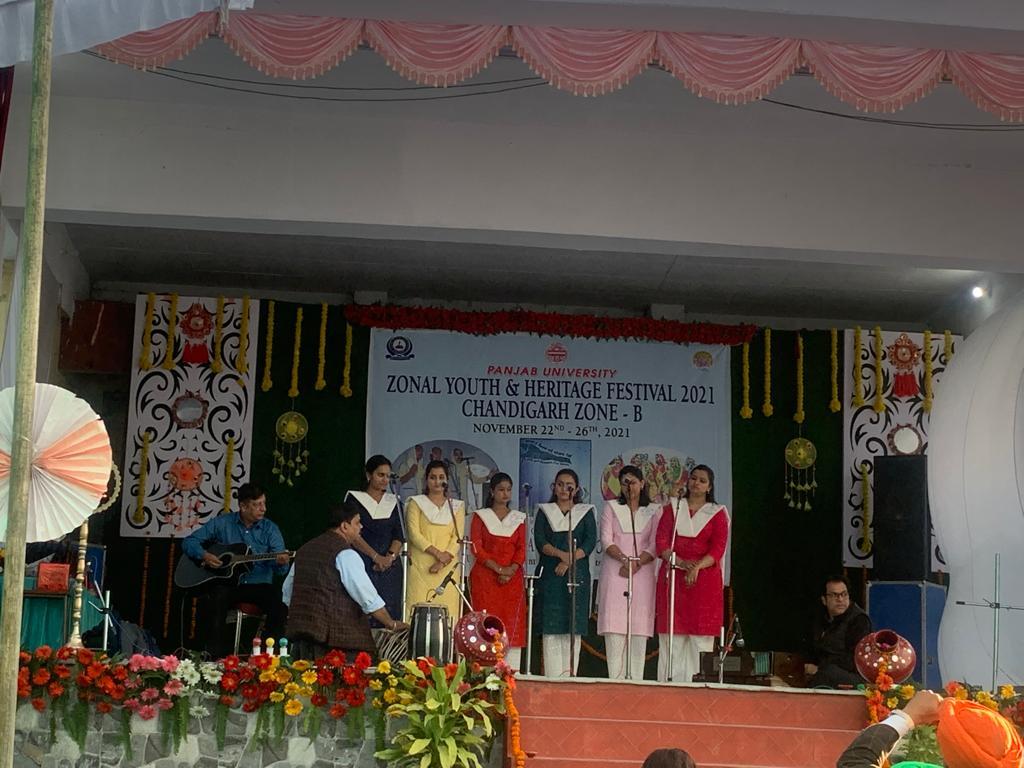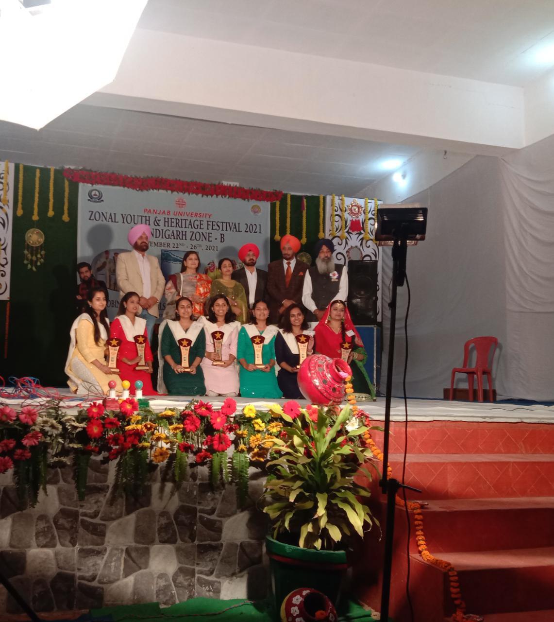 The students of Government Home Science College bagged many prizes in various competitions of Music and Heritage Items held on the first day of Panjab University Zonal Youth and Heritage Festival Zone-B held at Guru Gobind Singh Khalsa College for Women, Jhar Sahib on November 22, 2021. In Music items, the college secured first position in the Bhajan and third position in Group song category. The Bhajan & Group song team of the college comprised of Bhavika Anand and Meha from M.Sc (FN) Ist Semester, Archita and Sirounika respectively of B.Sc (H.Sc) 1st Semester, Arti of B.Sc (H.Sc) Vth Semester and Anju of B.Sc (H.Sc) IIIrd Semester. Arti of B.Sc.(H.Sc) Vth Semester also won Individual prize in group song team. Bhavika Anand of M.Sc (FN) Ist Semester won Second position in Geet Category. In the category of Heritage items, Kiran of M.Sc. Clothing & Textiles Ist Semester won First Prize in Raasa Vatna and Naina of B.Sc Fashion Designing Vth Semester won Second Prize in Khiddo Making.