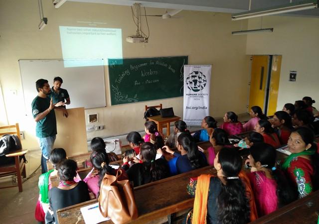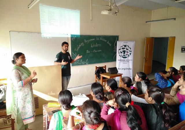 Second day of the NSS Training programme witnessed an array of talks on various interesting topics. Mr. Davinder Ahuja and Mr. Altaf Husain from a renowned NGO 'Humane Society International India' delivered a talk on care, maintenance and rescue of animals. The audience viewed various videos related to the rescue operations of street dogs and farm animals. In their talk they also stressed upon various drawbacks of eating non-vegetarian foods. During the forenoon session, Mrs Neelam Kumari, Assistant Professor in the department of Human Development & Family Relations focused on parenting skills, gender equality, laws related to children and women for their welfare, engaging children in creative activities and role of parents in children academics. Principal of the college, Prof. Sudha Katyal also emphasized on the role of good parenting and its contribution in making families happy. She appreciated the whole event and urged the audience to make best use of those strategies which can minimize the gap between parents and their children.