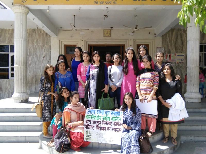 The need to sensitize rural women regarding family planning and its effect on health motivated the students of Home Science College to initiate an awareness programme regarding this issue. This evangelism was carried out in village Khuda-Ali-Sher on 18th March 2017 by Department of Extension Education. The students of B.Sc.(H.Sc.)( Interior Design and Resource Management stream) 6th semester organised various activities on the basis of observations of survey conducted by them. A skit on importance of appropriate age of both marriage and child bearing was performed. There was an interactive session where information regarding methods of family planning was taught using flash cards. A lecture on myths related to this issue was also appreciated by the local women.