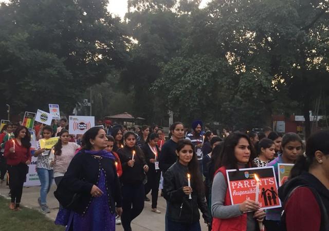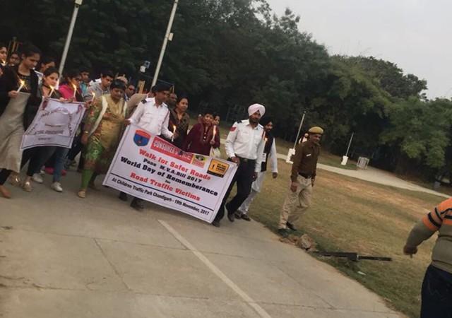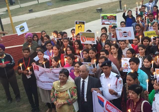 On the occasion of World Day of Remembrance- 2017, A Candle March was organized by a renowned NGO- 'Citizens Awareness Groups' and Chandigarh Traffic Police at Chandigarh Traffic Park in sector- 23. The chief guest for the event, Mr. Rajeev Ambasta who is presently serving as a DSP, Chandigarh Traffic Police, South Zone, along with his wife and Chairman of the NGO, Surinder Verma were present there. More than 100 students from the college along with NSS Incharge, Seema Jaitly gave Sharadhanjali to the those victims who lost their lives in accidents. Principal of the college, Prof. Sudha Katyal highly appreciated this initiative.