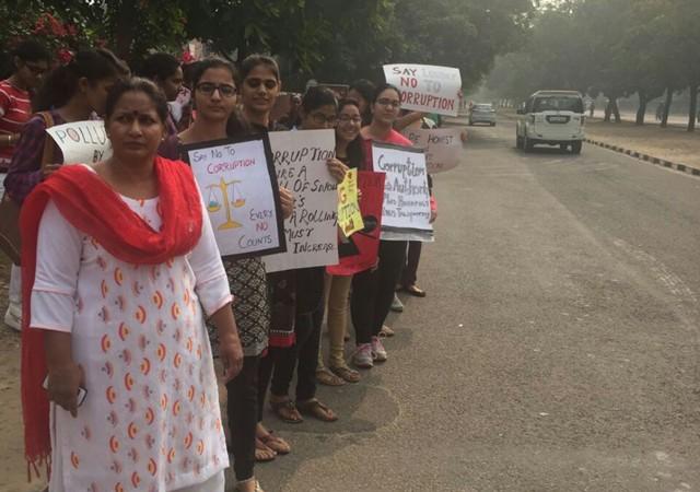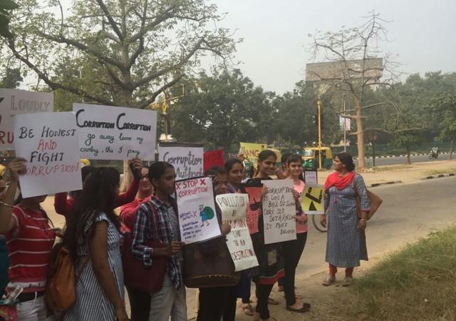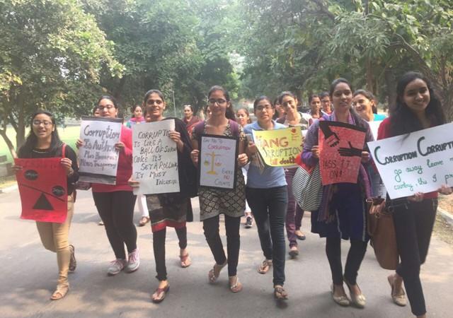 The rally witnessed participation of a large number of students. The rally was flagged off by the principal of the college Prof. Sudha Katyal in the presence of the NSS incharges Ms. Chaaya and Ms. Seema Jaitley and the accompanying faculty members. The students holding banners, posters, and placards in their hands chanted slogans for generating awareness among the common masses. Before that they actively participated by making beautiful posters and writing motivational slogans against corruption with an aim to spread awareness among people. The rally highlighted and promoted the importance of integrity in all walks of life. The students urged the people neither to give nor to take bribe and adopt any unfair practices. They told them about how corruption has spread its tentacles in all social organizations.