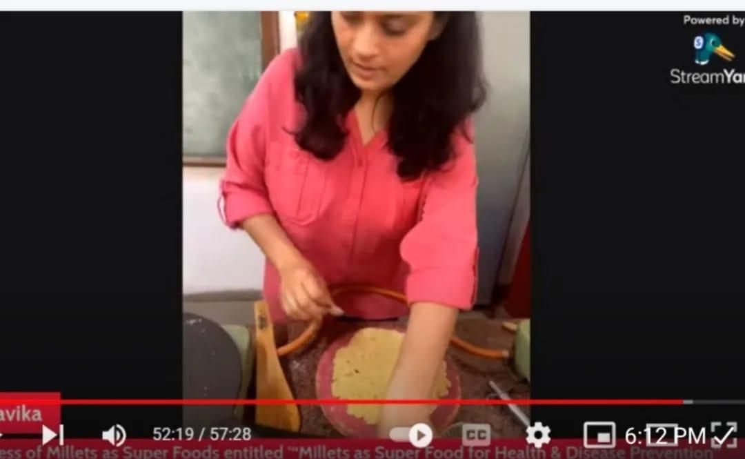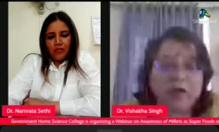 Government Home Science College organised a webinar on Millets- the wonder grains and a live demo for the preparation of thepla using sorghum. The resource person for the webinar was Dr. Vishakha Singh, Associate Professor, College of Community and Applied Sciences, Maharana Pratap University of Agriculture and Technology, Udaipur, Rajasthan. She highlighted the importance of millets and their clinical significance in the diet. She also significantly foregrounded how millets help in boosting our immune system and fight diseases by increasing the nutritional component in our bodies.